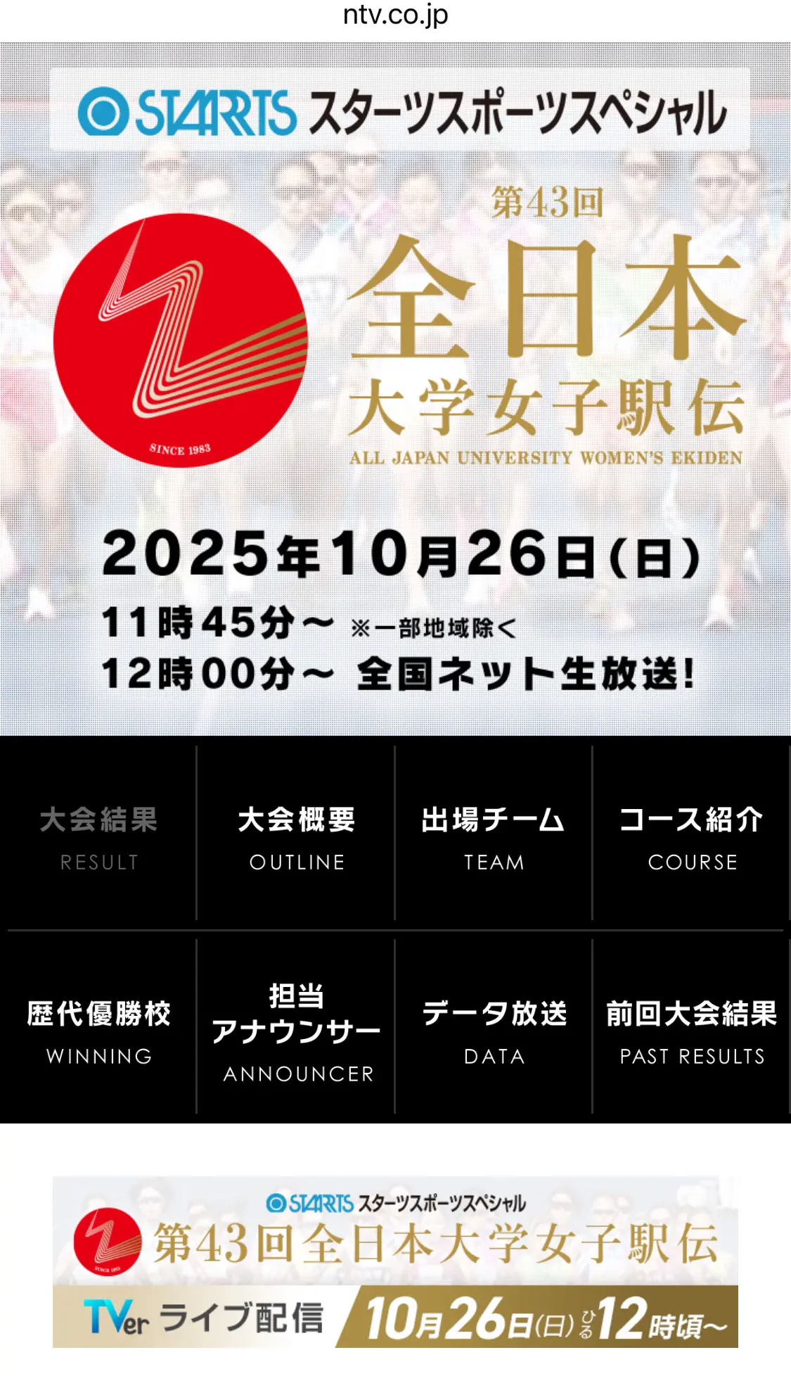 全日本大学女子駅伝の開催が明日に迫ってきました。大学日本一を決める大会です。沖縄県からはどうやって観たらいいんだろうという人もいると思いますが、Tverのこちらのページで中継をみることができます。スマホにTverのアプリが入っている場合には、そこからもご覧になれます。