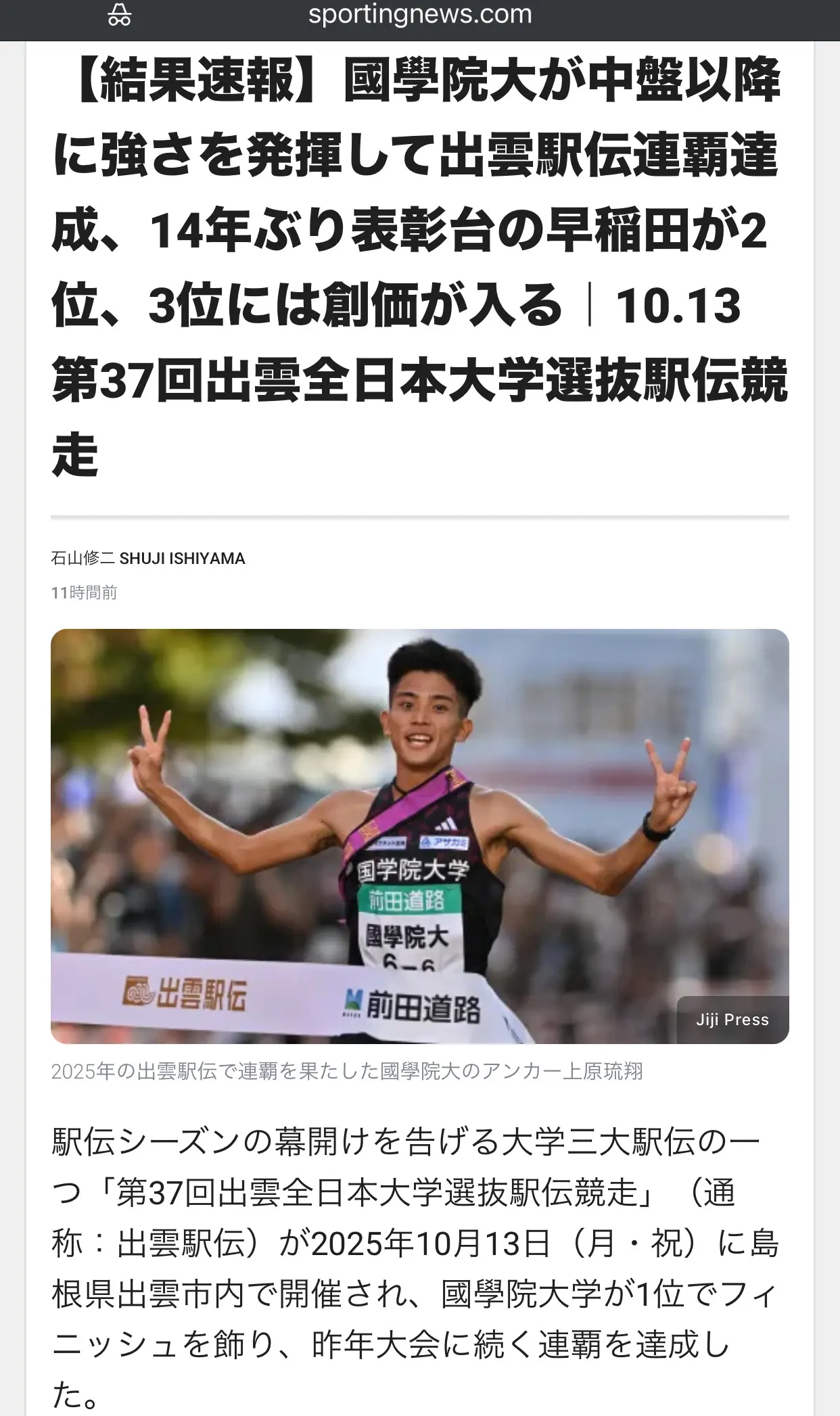 大学三大駅伝の一つ、出雲駅伝が昨日開催されまして、國學院大学が優勝を飾りました。おめでとうございます!見ていて、すごくチームの雰囲気がよさそうだなと感じました。優勝するチームというのは、やはり、こういうチームなのかもしれません。