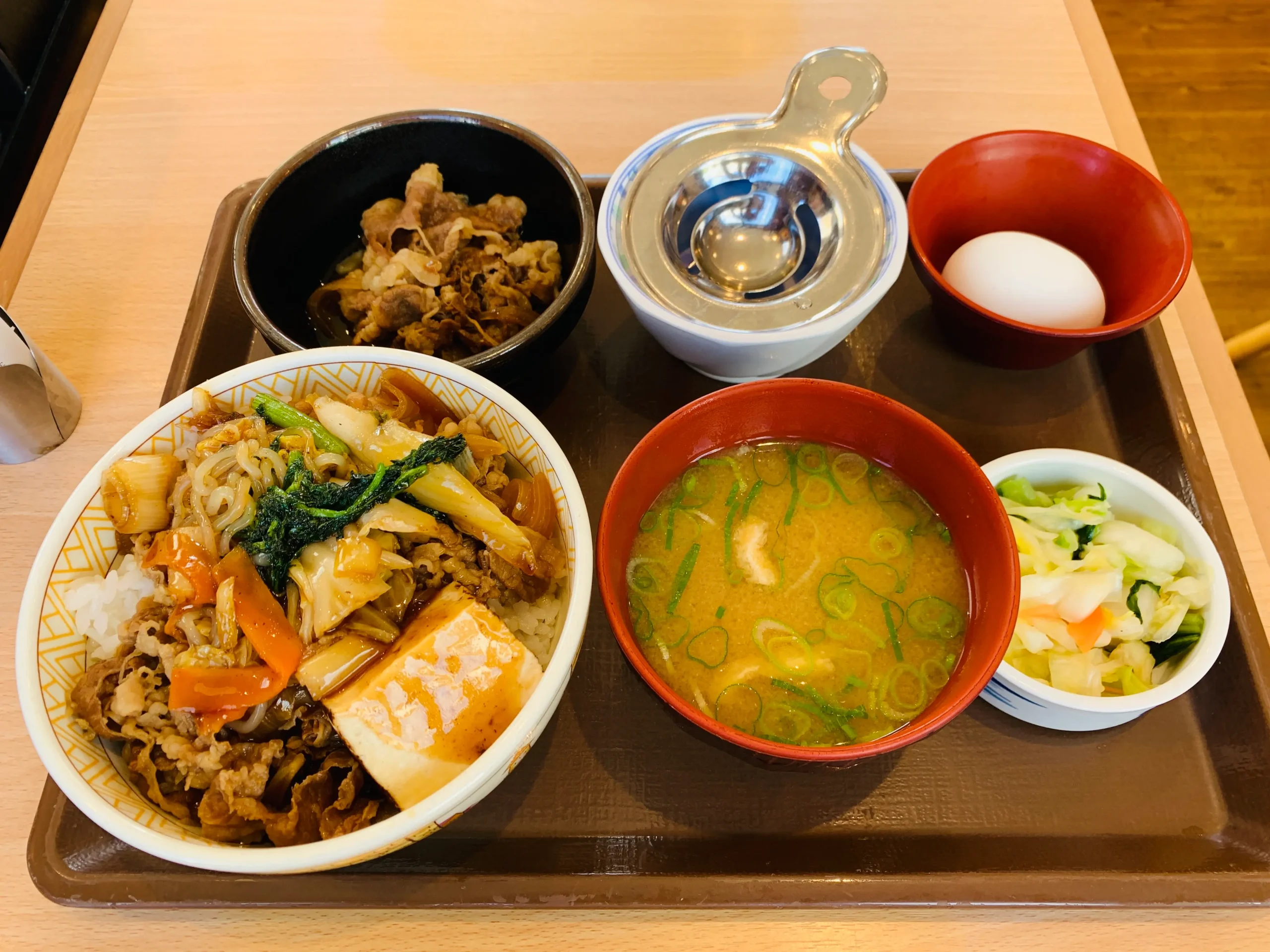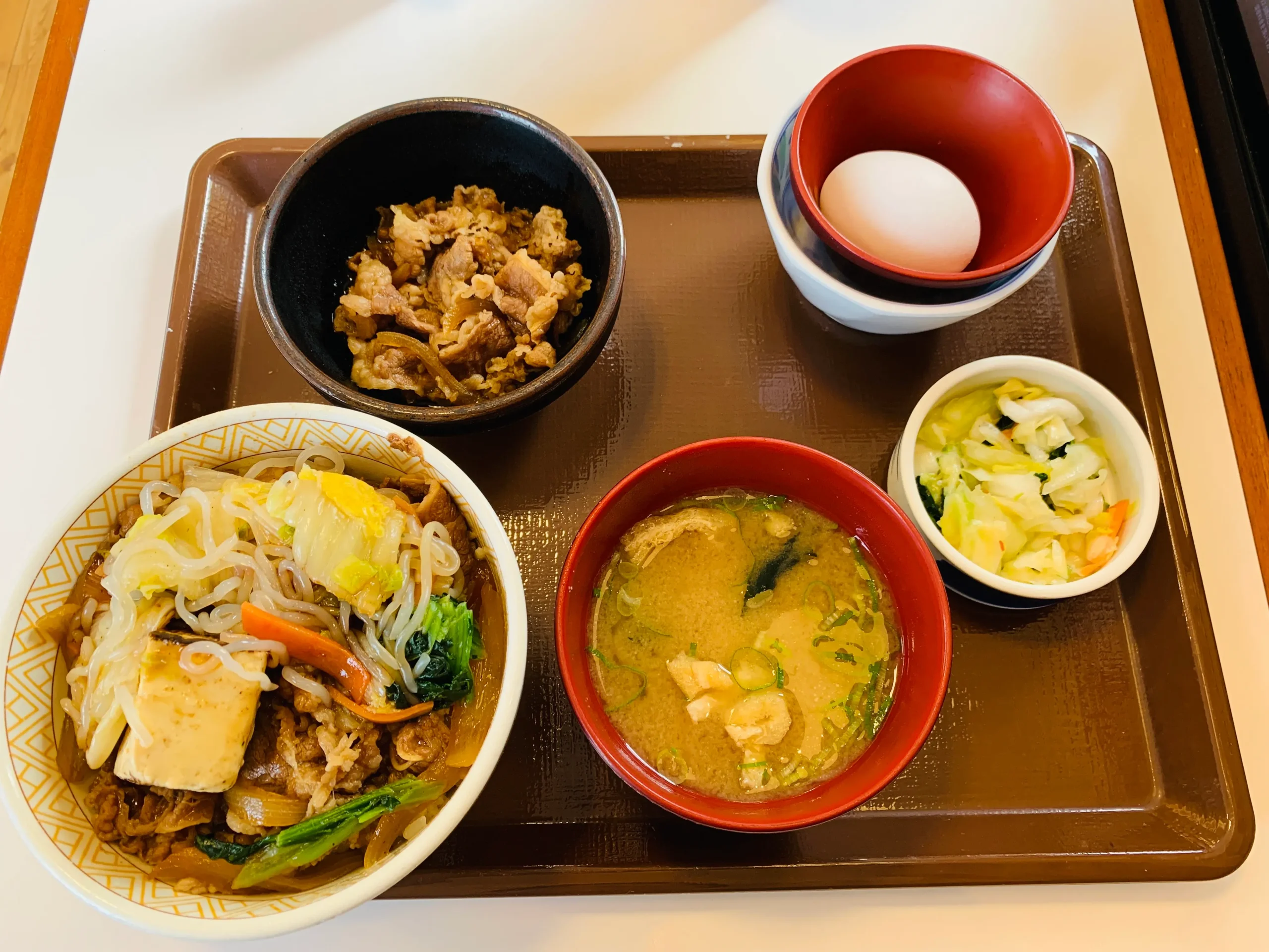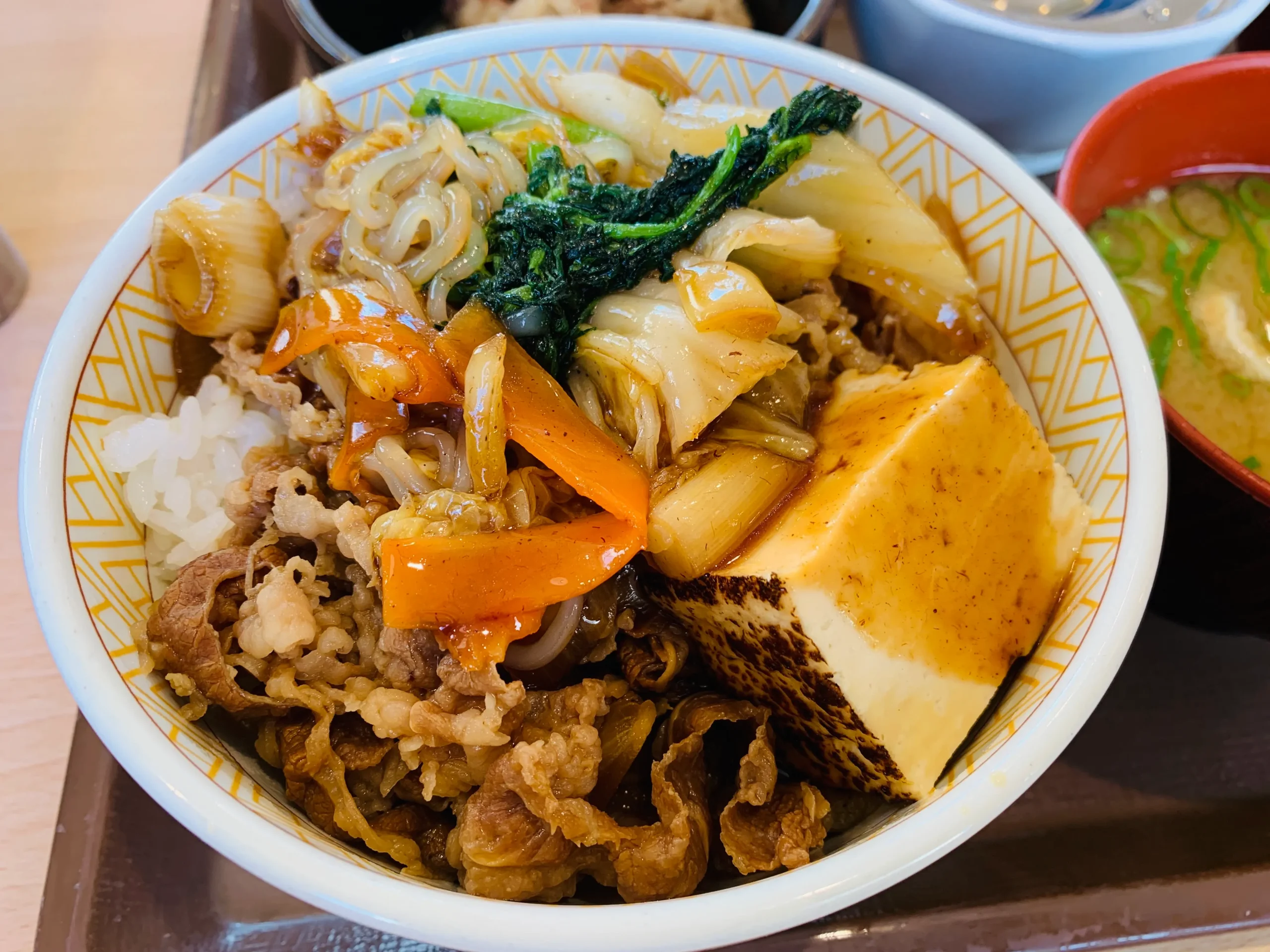 「すき家」でダイエット中に食べても大丈夫なメニュー「月見すきやき牛丼」牛肉、卵、豆腐などタンパク質が豊富な月見すきやき牛丼は、ダイエット中にも食べれます。私も最近すき家で店内飲食する際は、毎回、「月見すきやき牛丼」+追い牛おしんこセットを頼んでいます。追い牛おしんこセットで、さらにタンパク質を追加するわけです。