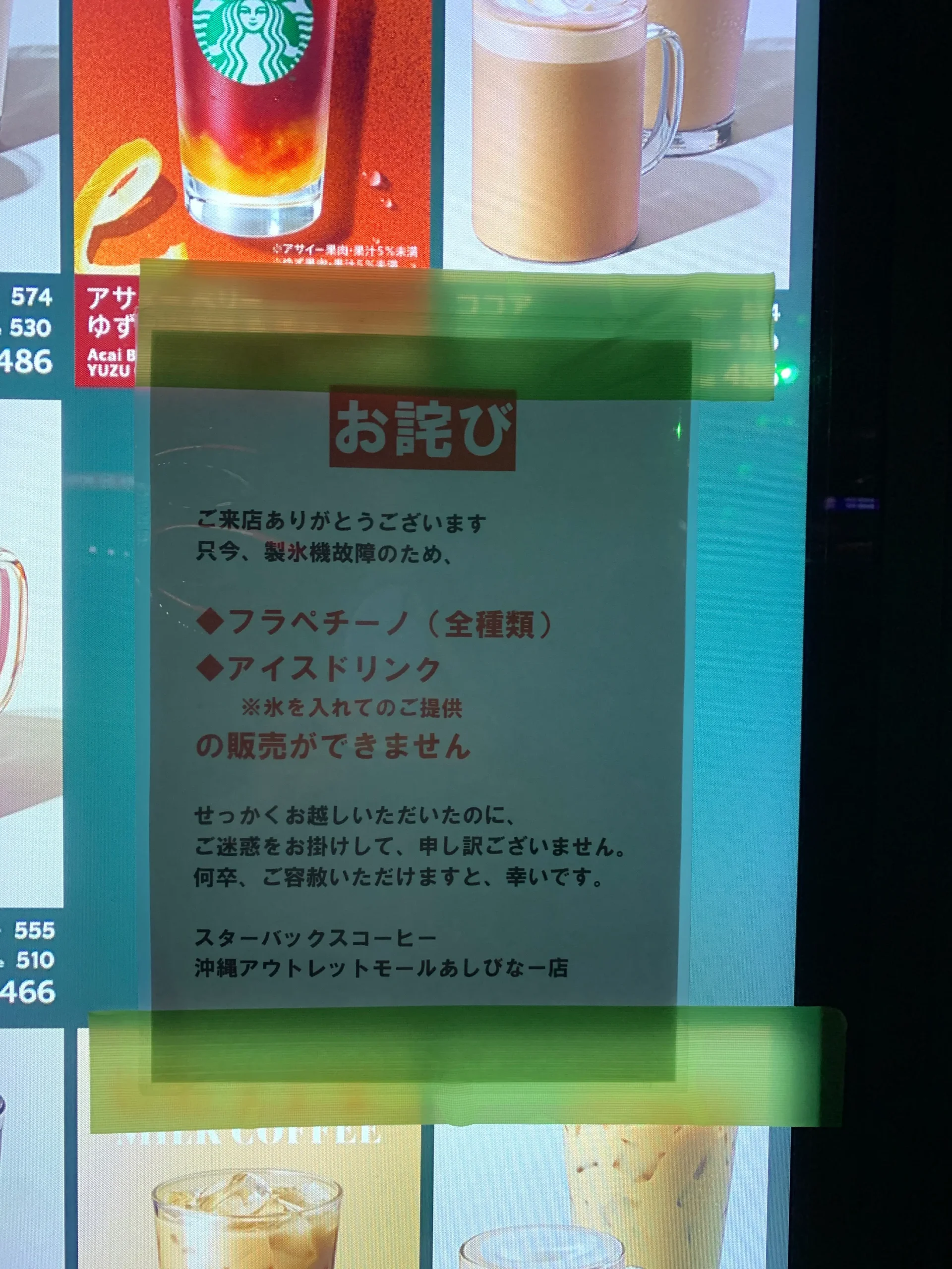 出張パーソナルトレーニングを終えて、スターバックスをドライブルーしようとしたら、製氷機が故障でフラペチーノの提供ができないとのこと、、、アイスドリンクの氷も無しになっているそうで、、、(この前もそうだったな。結構長い期間これが続いているみたいだけど。いつになったら製氷機なおるんだ?・・・)仕方なく、ワッフルだけドライブスルーして帰りました。