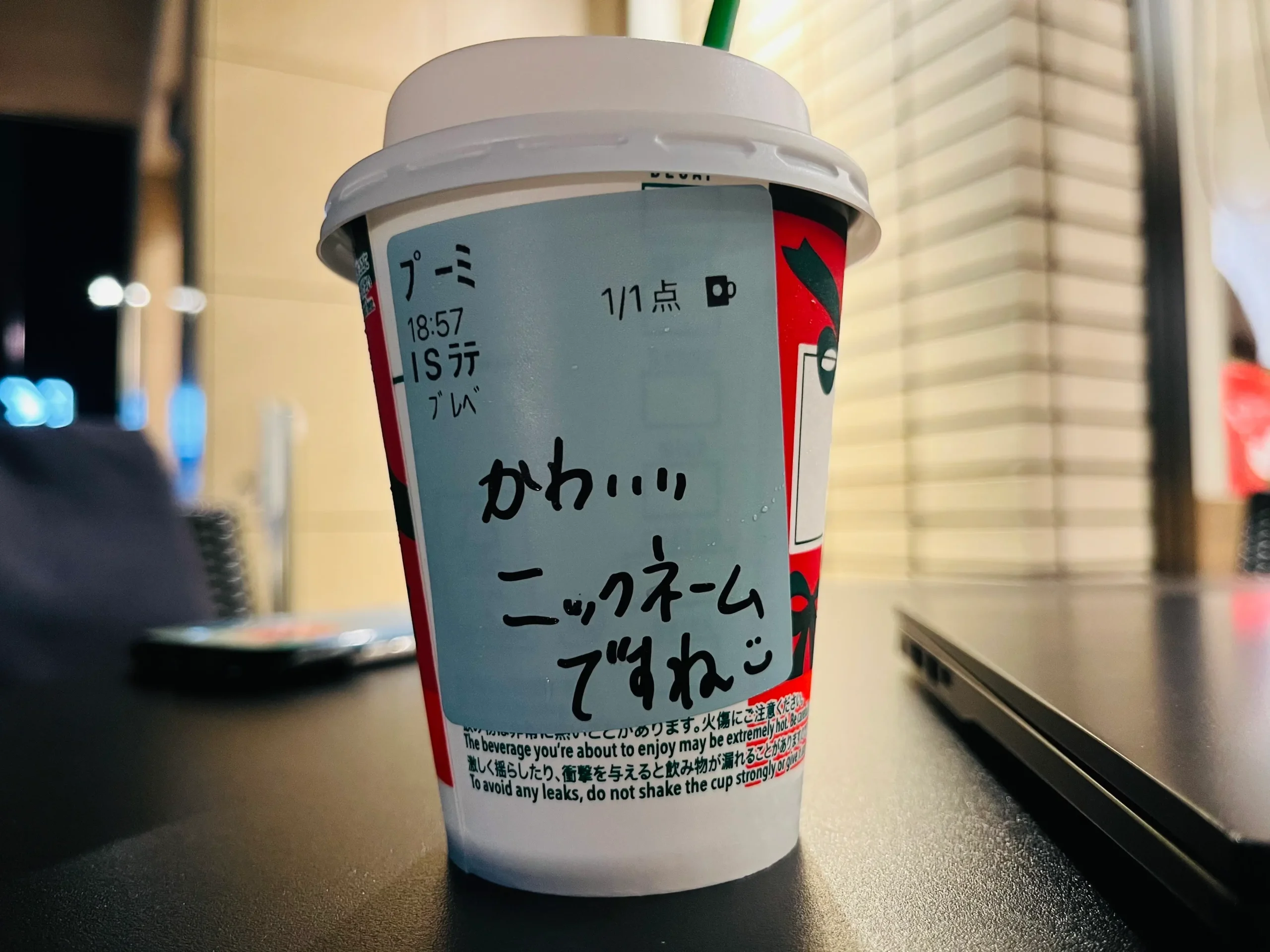 出張パーソナルトレーニングを終えて、スターバックスで作業していました。今日は、メッセージを書いてもらえましたよ^^