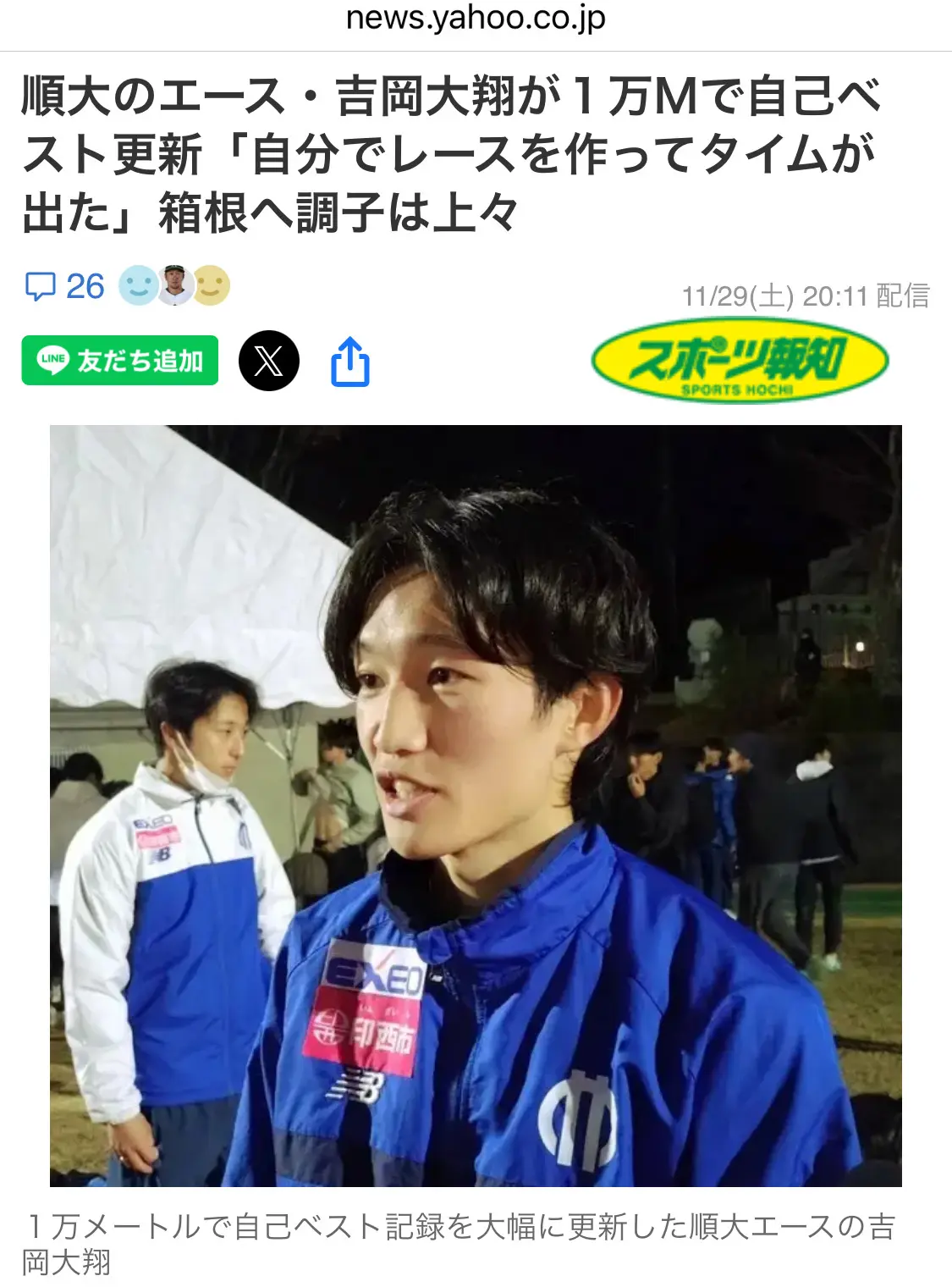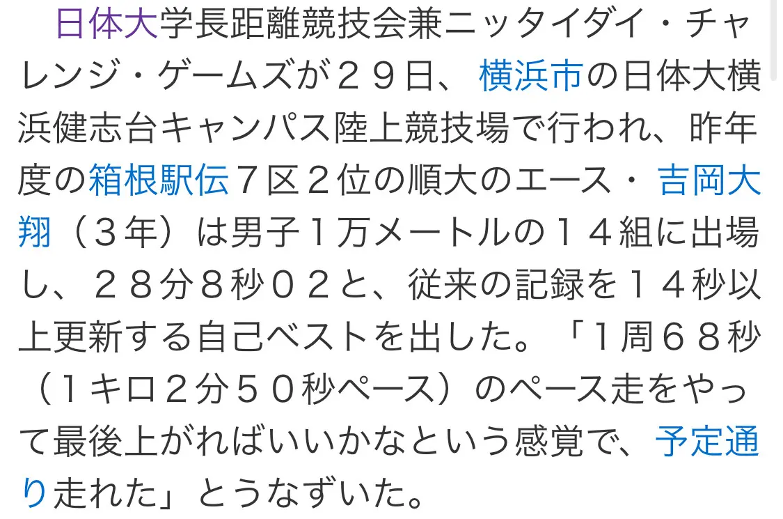 順天堂大学の吉岡大翔選手(男子5000mの日本高校記録保持者)が、10000mで自己ベストを更新したのも、陸上界をにぎわせました。