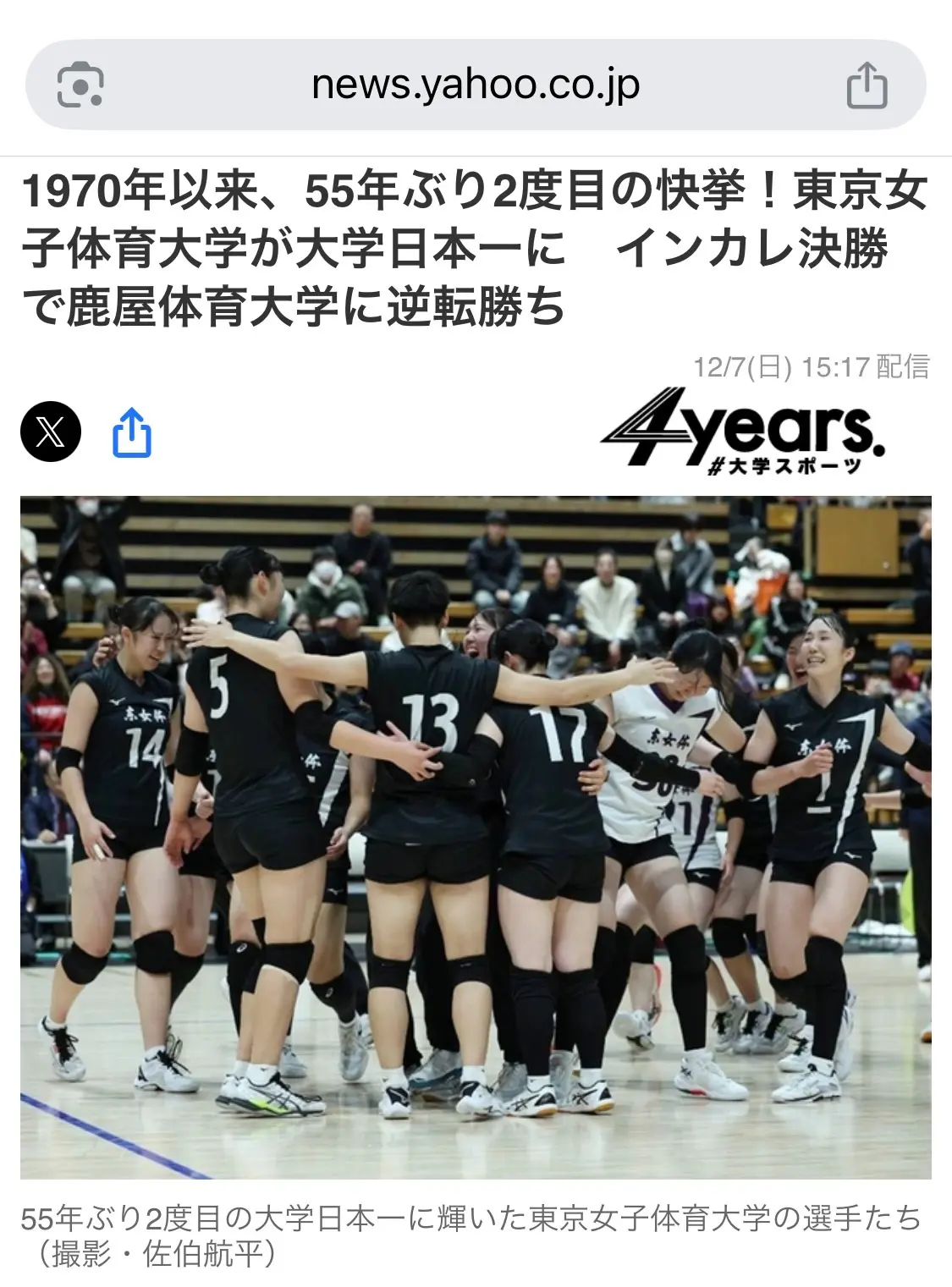 バレーボールの大学日本一を決める全日本バレーボール大学選手権大会の決勝が開催され、鹿屋体育大学 VS 東京女子体育大学の対戦となりました。私はライブ配信をみながら、母校の鹿屋体育大学を応援していたのですが。結果は、東京女子体育大学が55年ぶりの優勝!鹿屋体育大学は、大学日本一まであと一歩の結果となりました、、、
