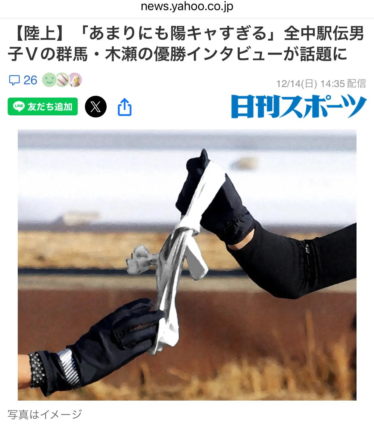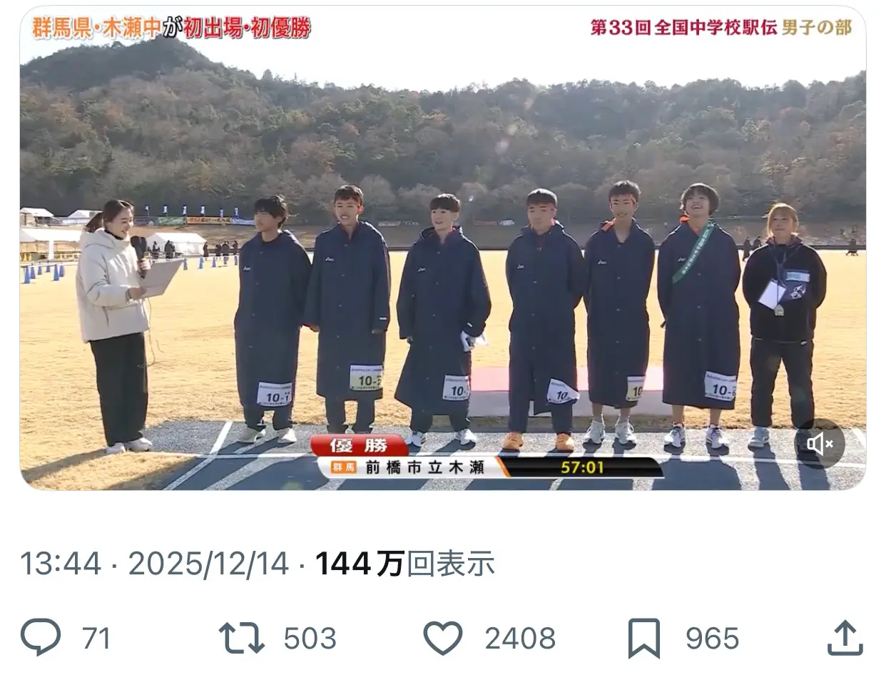 で、男子優勝の前橋市立木瀬中学校のインタビューが、「あまりにも陽キャすぎる」と話題になっています。(個人的には、元気があっていいなと思います)