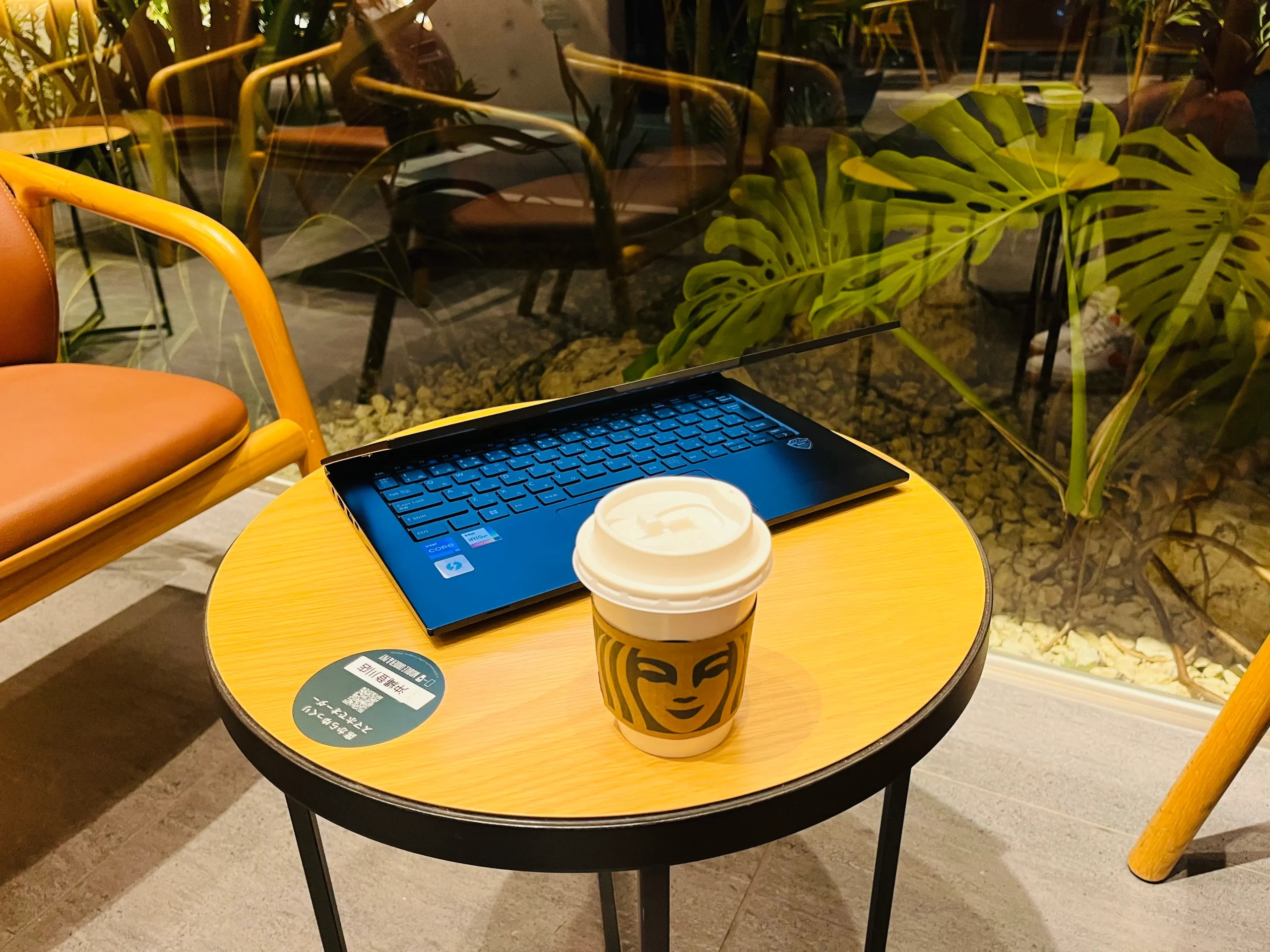 出張パーソナルトレーニングを終えて、スターバックスで記録作業などしていました。写真だけでどこの店舗か分かった人は、かなりのスタバ通です。