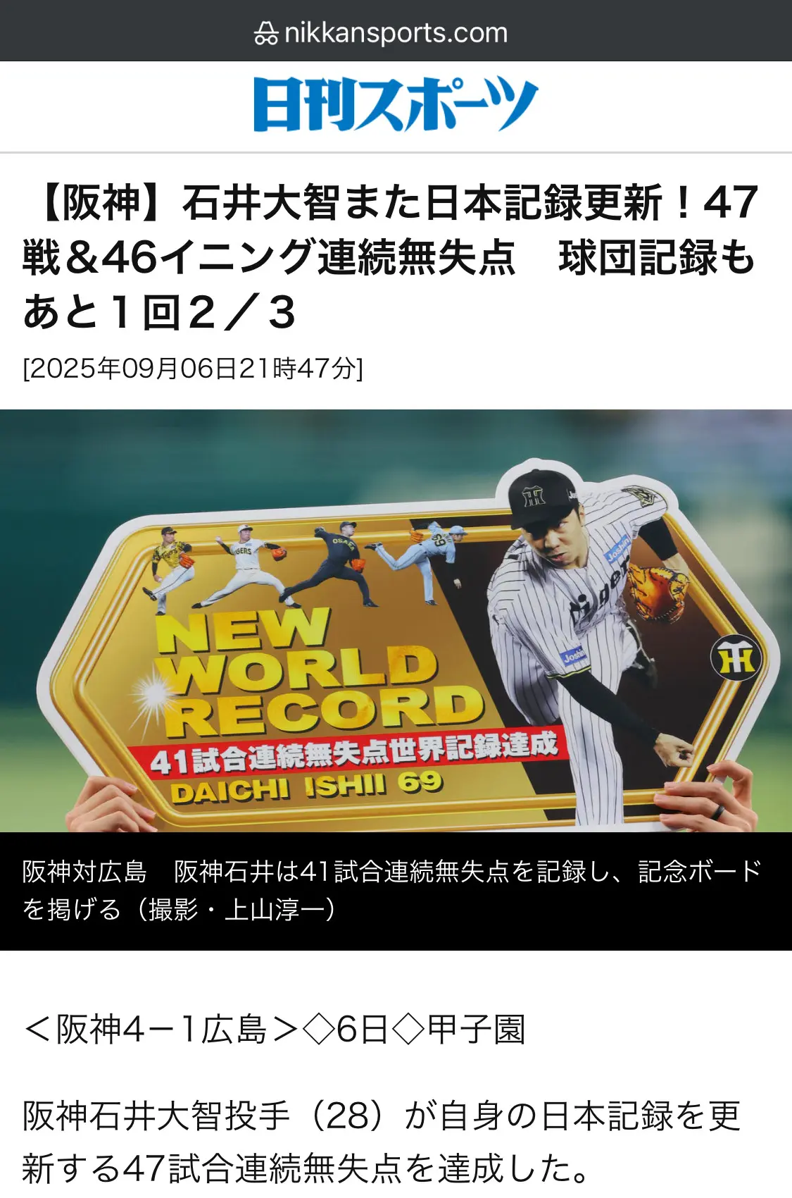 史上最速でのリーグ優勝に大きく貢献したのは、間違いなく、この選手でしょう。41試合連続無失点の世界記録達成(現在も記録更新中)の石井大智選手です。