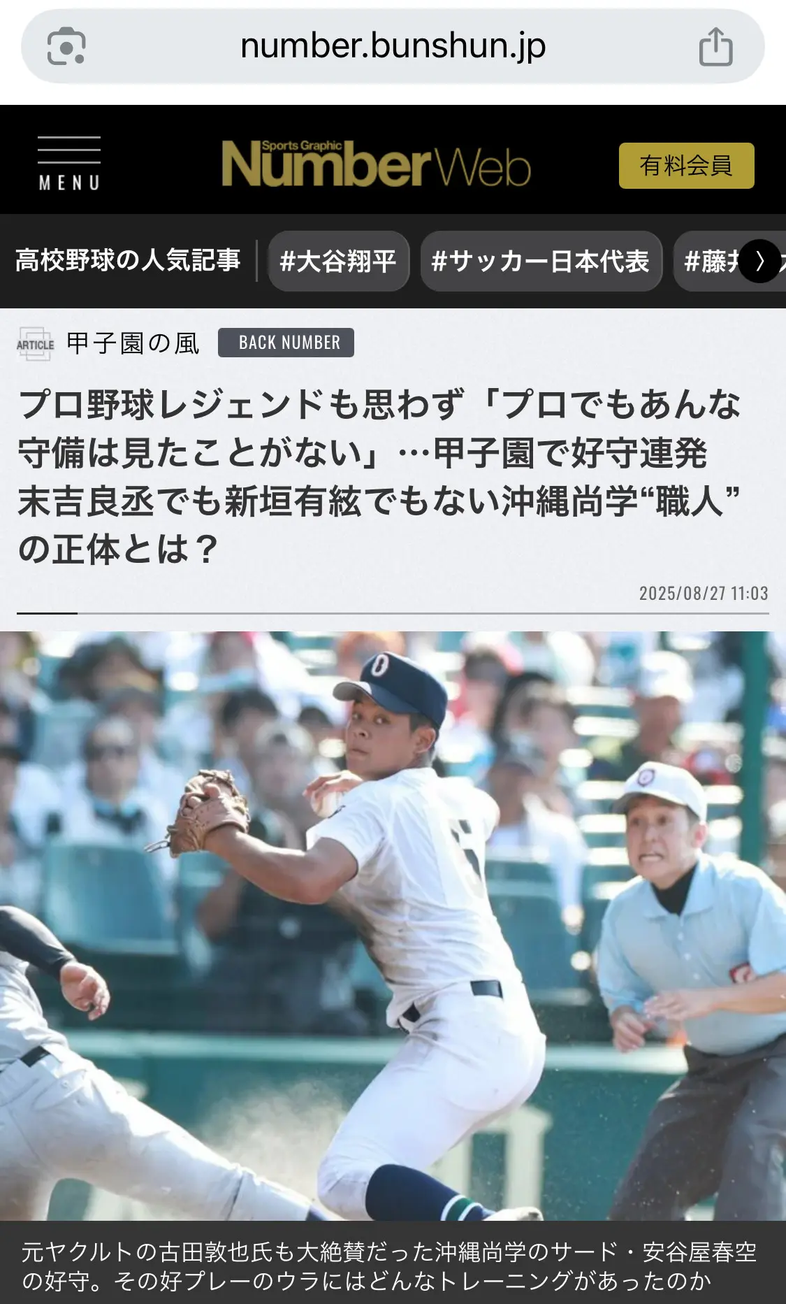 安谷屋選手の守備に関しては、プロ野球のレジェンド古田敦也さんが、「プロでもあんな守備は見たことがない」と大絶賛するほどです。