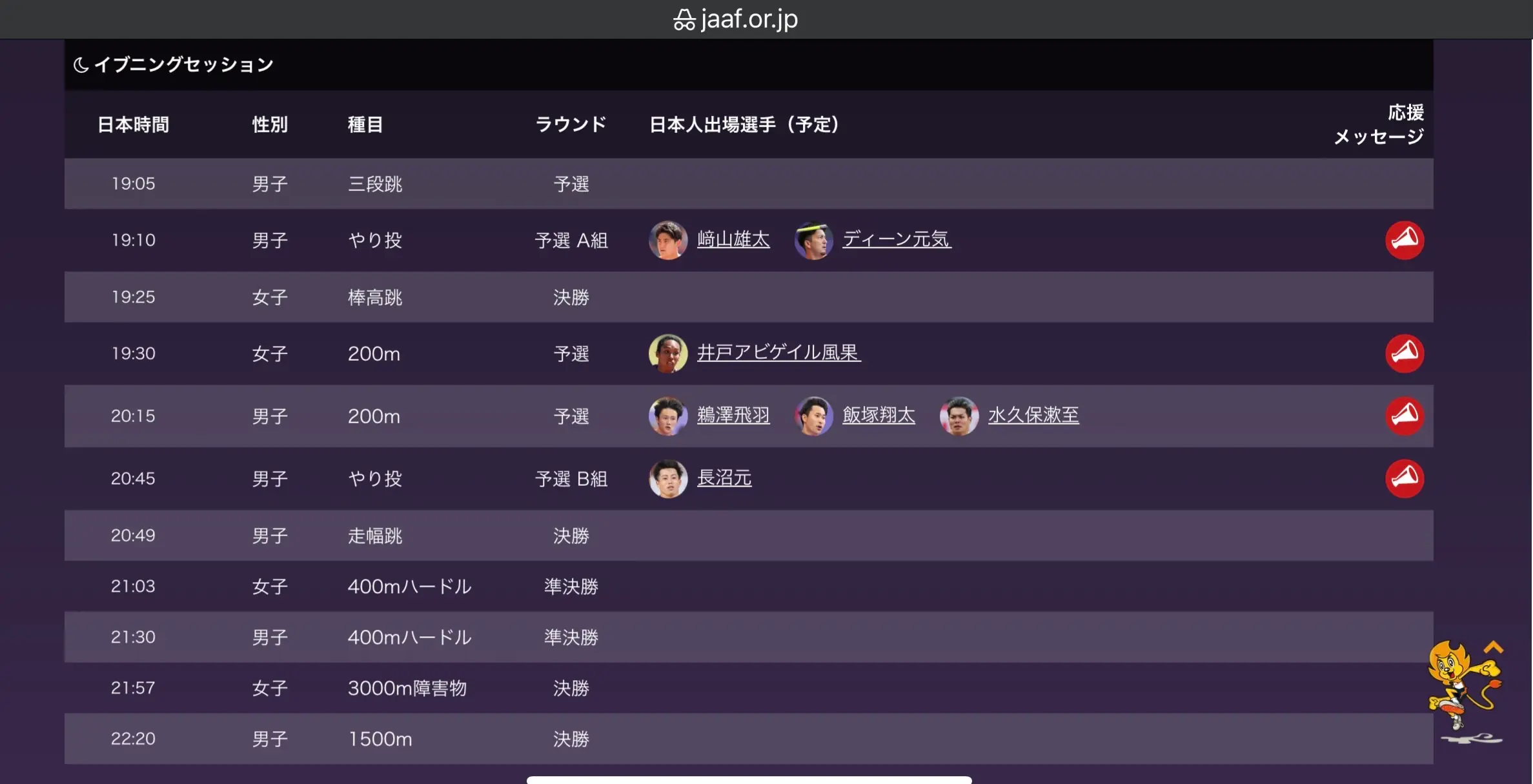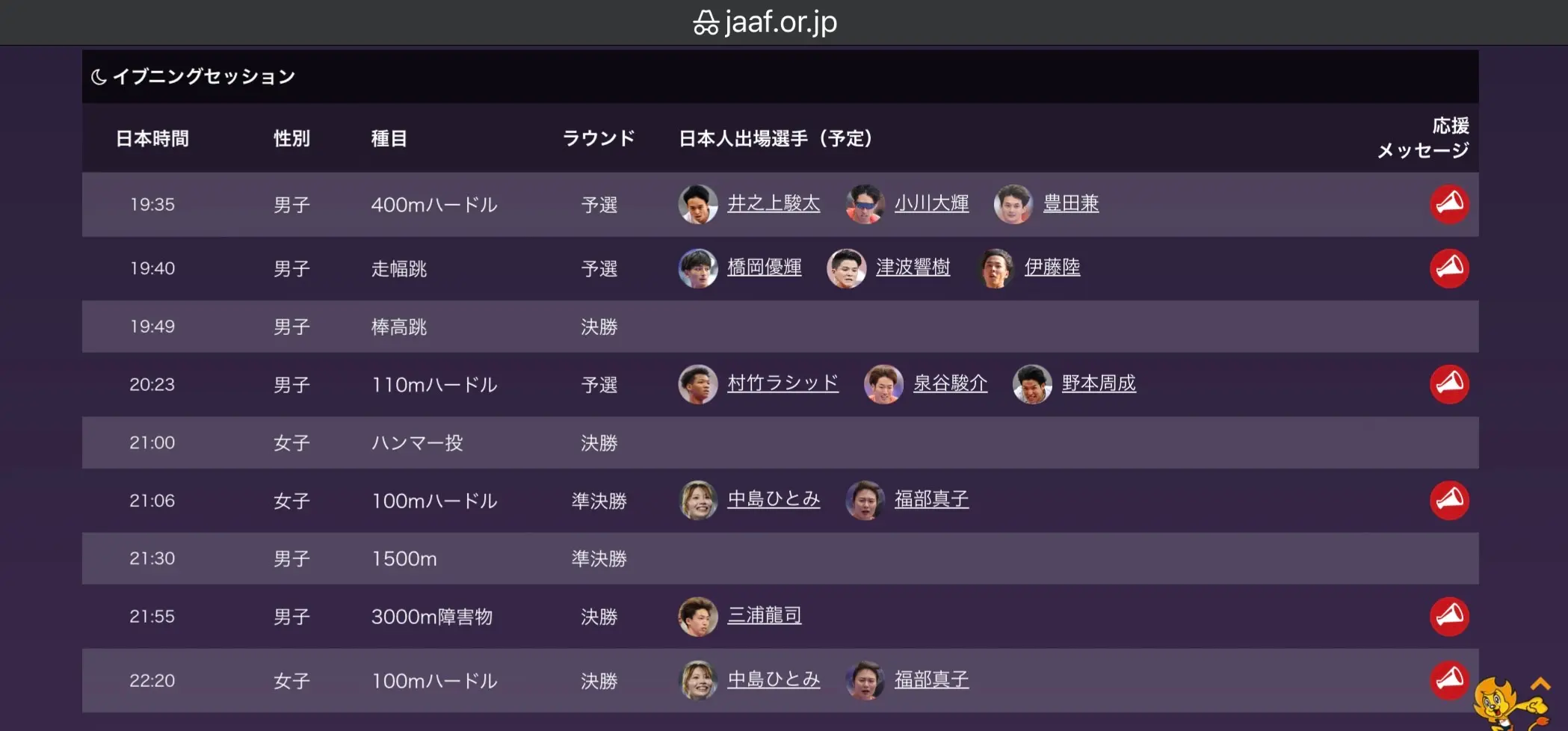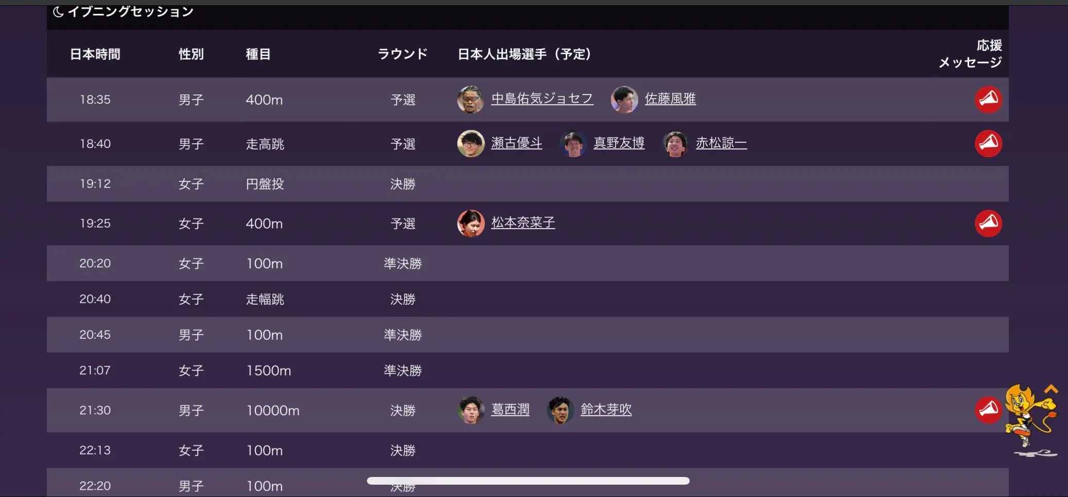 今日夕方からは、世界陸上の男女100m準決勝、決勝、男子10000m決勝がおこなわれます。こちらも注目です。