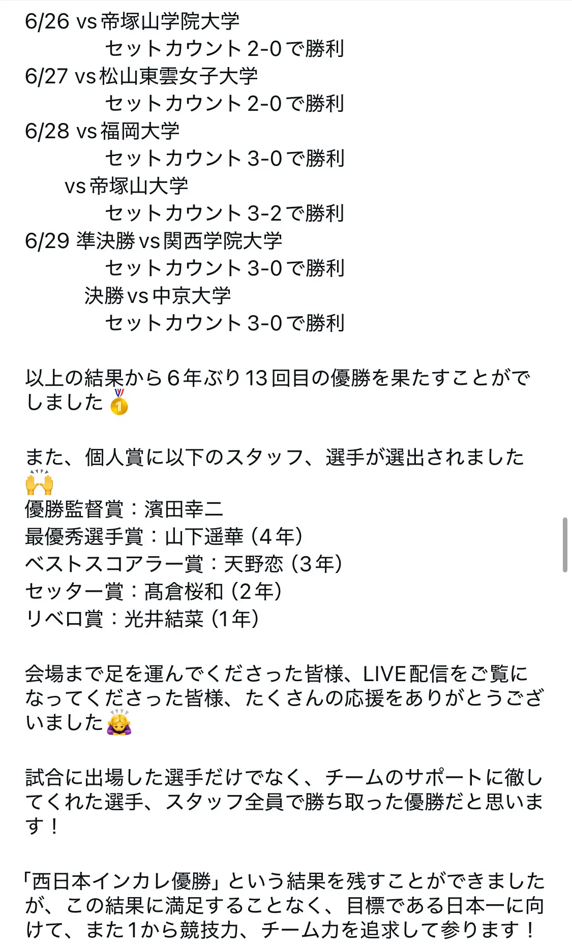 今年は母校が、女子ビーチバレーボールで大学日本No.1、女子バレーボールで大学西日本No.1になっているわけで。本当に、うれしい限りです。