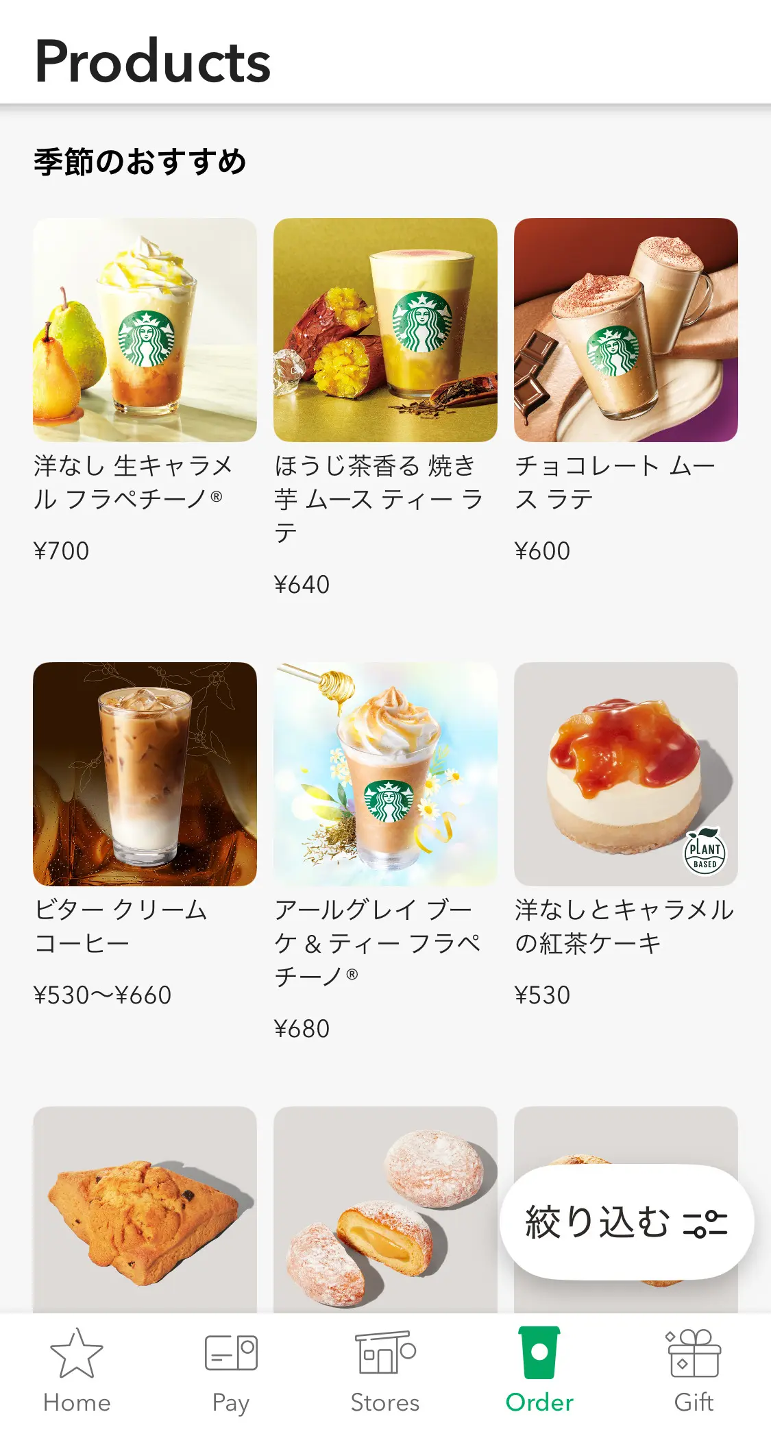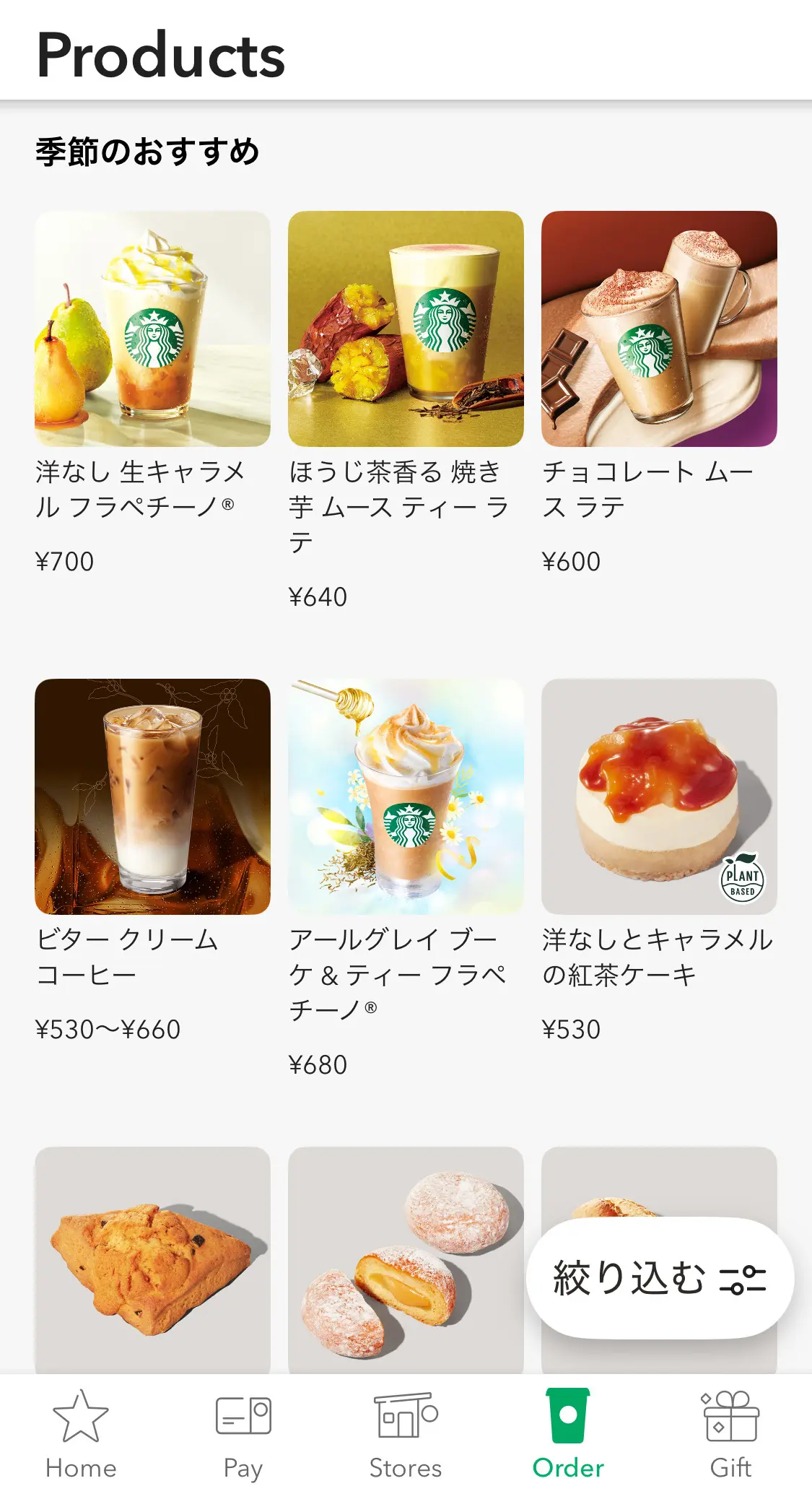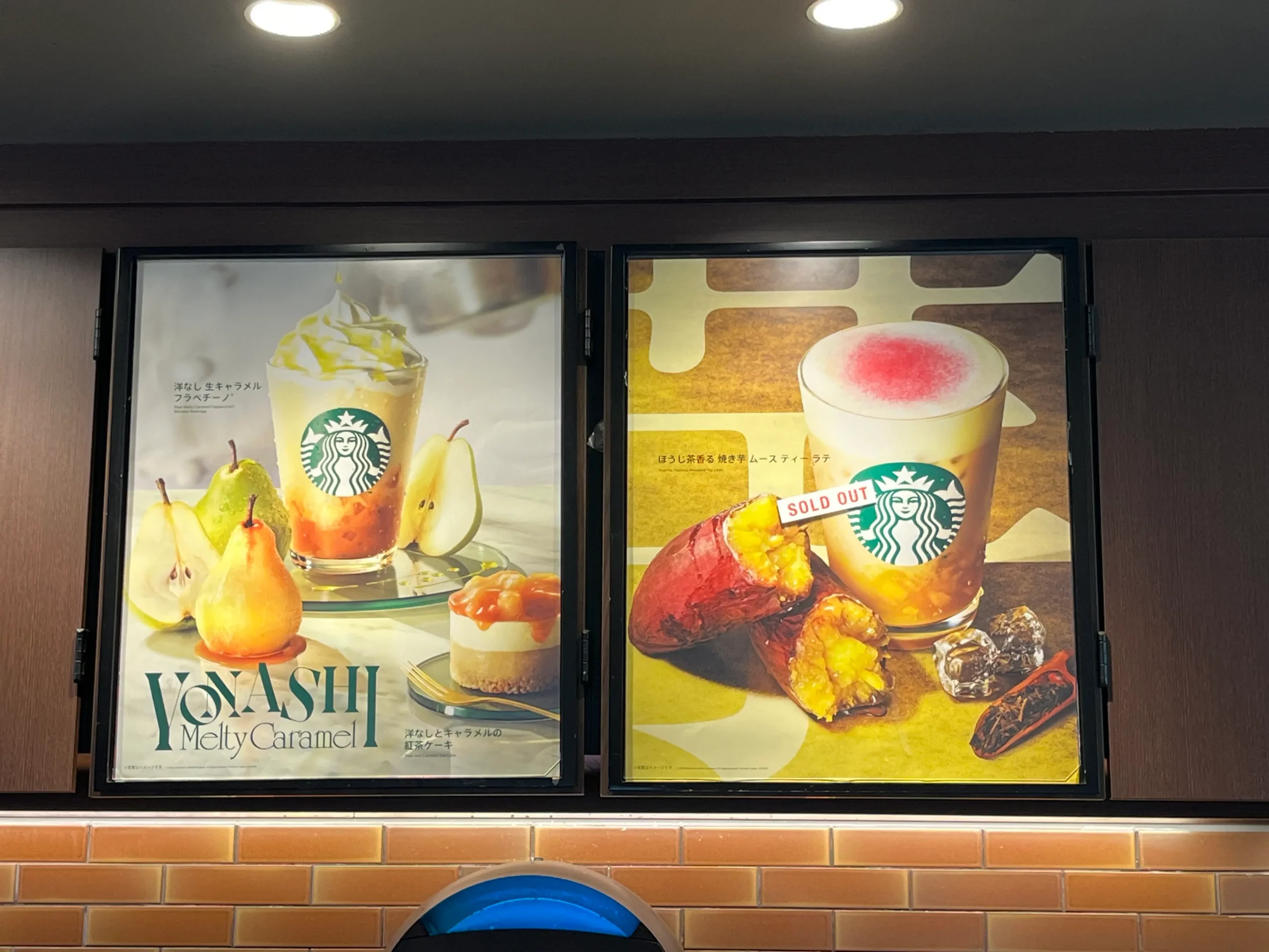 話は変わって、今日も、目黒店(スターバックス本社)のモバイルオーダーペイ画面には、先ほどまで「ほうじ茶香る 焼き芋 ムースティーラテ」がバッチリ表示されていたのに。