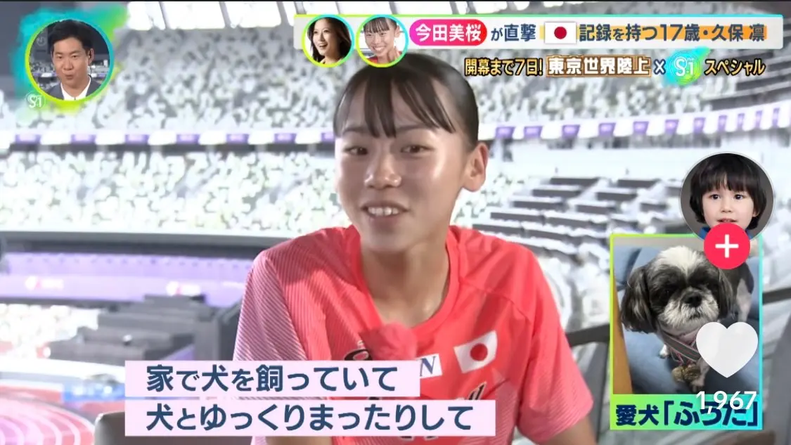 世界陸上に女子高校生で日本代表に選ばれ、女子800mへ出場した久保凛選手(東大阪大敬愛高)今回はレース展開が運悪く、不完全燃焼で終わってしまった印象です、、、次は、1分55秒台で走れる力をつけて、最初から先頭にたって逃げ切るレースを見たいですね。これができたら、今回のようなことにはなりませんから。その久保凛選手ですが、犬を飼っているみたいです。「ふうた」という名前だそうです。「ふうた」って、カッコいい名前ですね。足も速そう。