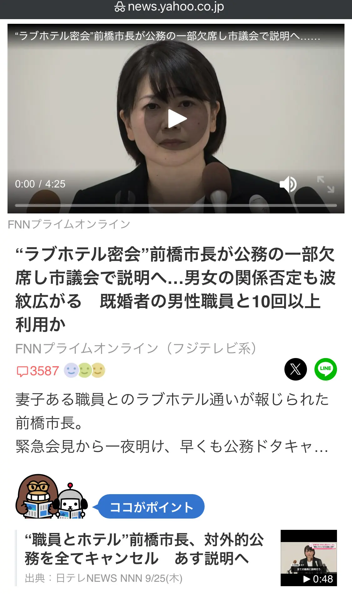 前橋市長が、既婚者男性職員と公務中に10回以上ラブホテルで会っていたとの報道がなされました。「記録的短時間大雨情報」が出ていた際もホテルにいたということで、大問題になっています。最近は、市長が全国ニュースになるほどのトラブルを引き起こすケースが増えています。伊東市の田久保市長に始まり、南城市の古謝市長、前橋市の小川市長と、、、この3人はどうなっているんだ一体。