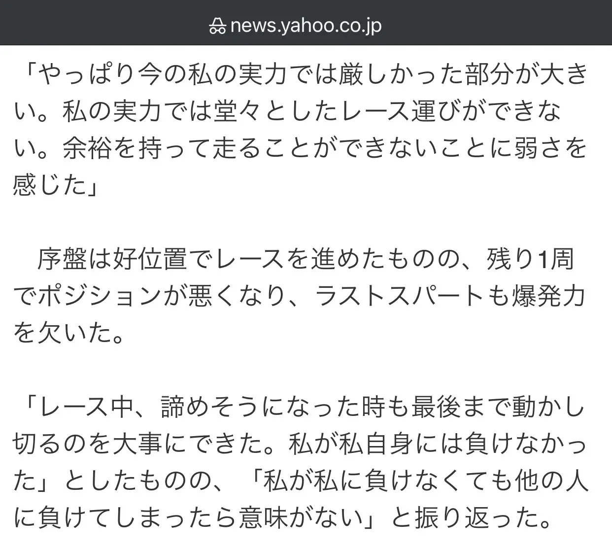 ・・・気になったのが田中希実選手でして。レース後のインタビューでも、大会前の記者会見でも、かなり後ろ向きな発言が目立つんですよね。なんでこんなにマイナス思考になっているんだ・・・日本中長距離界のエースという自覚をもって、前向きに、プラス思考で競技に取り組んでほしいです。田中希実選手は、陸上競技に向き合う気持ちが変わるだけで、もっと飛躍できると思うのですが。女子1500mでは3分台の日本記録をもっていますし、女子1500mの世界記録更新も十分射程圏内だと思うのですが。その理由と、田中希実選手に関して他にも気になっていることがあるので後日書きます。