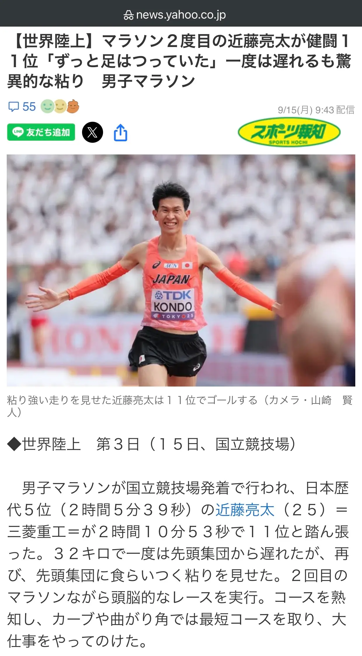今日で世界陸上が終わり、また元の日常に戻りますが。私が今大会で学んだことは、「ランニング技術を矯正するより、パワーを矯正したほうがタイムが伸びる」という点です。とくに、日本人においてはです。長距離も、短距離も、ランニングの技術ではなく、「筋力」と「筋持久力」で世界に負けているなと、、、「筋力」と「筋持久力」で世界と大きな差があるなと、、、そこさえ向上できれば、日本代表も十分世界と戦えると思いました。トレーニングはもちろんですが。「筋力」と「筋持久力」向上のための「食事」と「睡眠」がかなり鍵をにぎっているのではないかと思いました。
