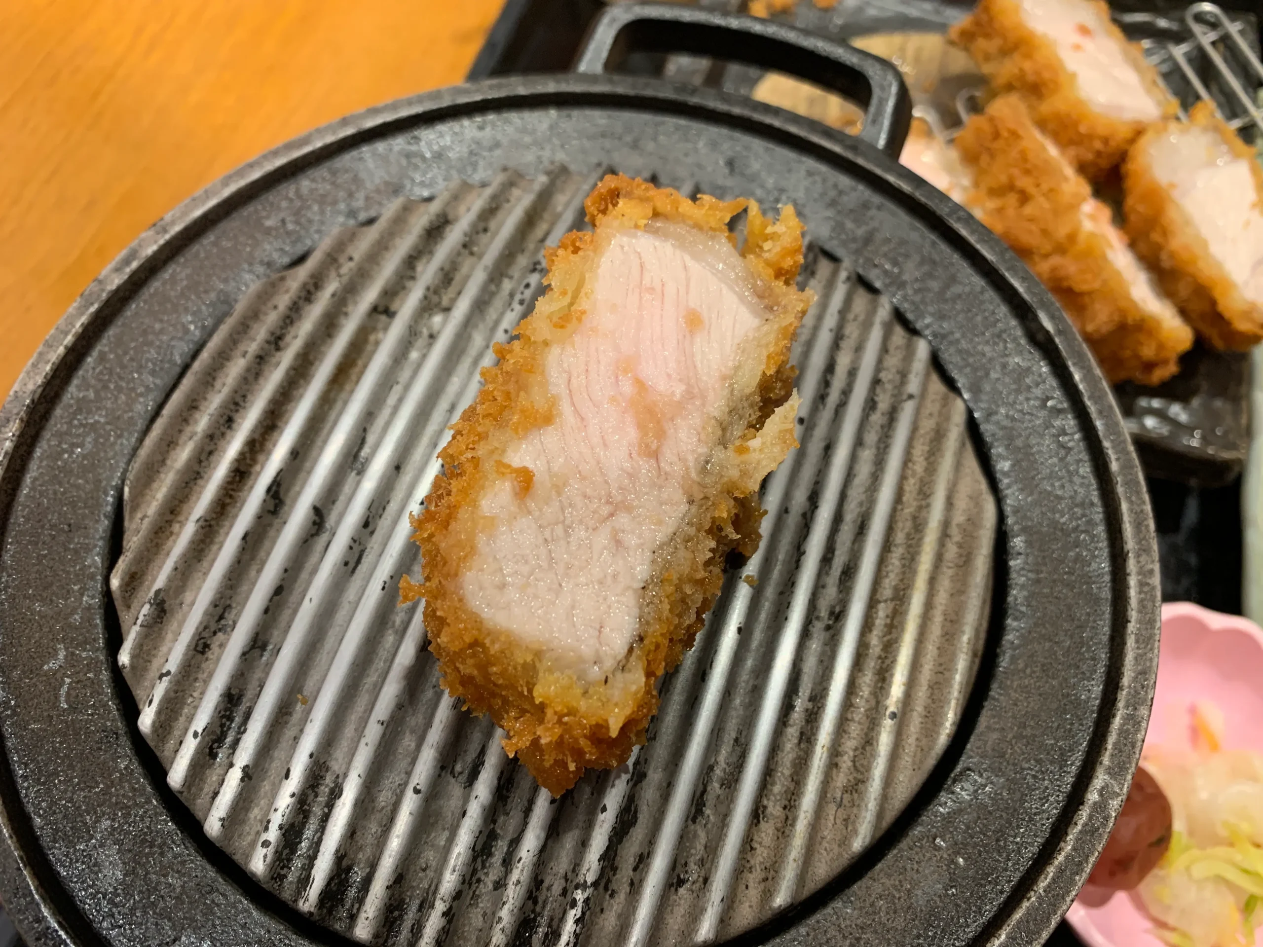 出張パーソナルトレーニングの合間に、サンエー那覇メインプレイスの中にあるかつ乃屋に寄りました。厚切りロースかつ定食を頼みましたよ。お肉が分厚く、衣が薄く、よかったです。自分で焼き加減を調整できるのもよいですね。厚切りロースかつ定食、気に入りました。また頼もう。ダイエット中も、ひと工夫すれば、とんかつメニューを食べても大丈夫です。ダイエット中にロースかつを食べるときの注意点は、ココに詳しく書きました。