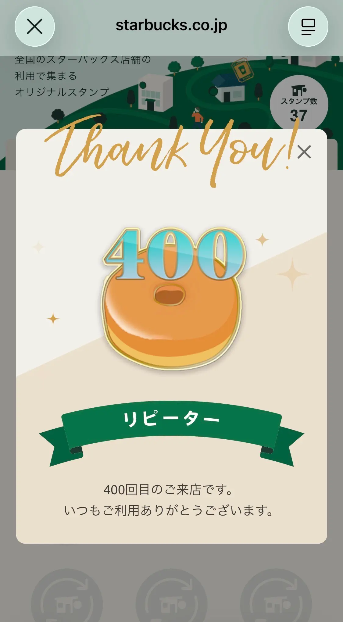 スターバックスのマイストアパスポートに、新しいメダルが加わりました。リピーターのメダル400です。これは複数の店舗に400回ではなく、ひとつの店舗に400回ということです。今日も、出張パーソナルトレーニングの後に寄りました^^
