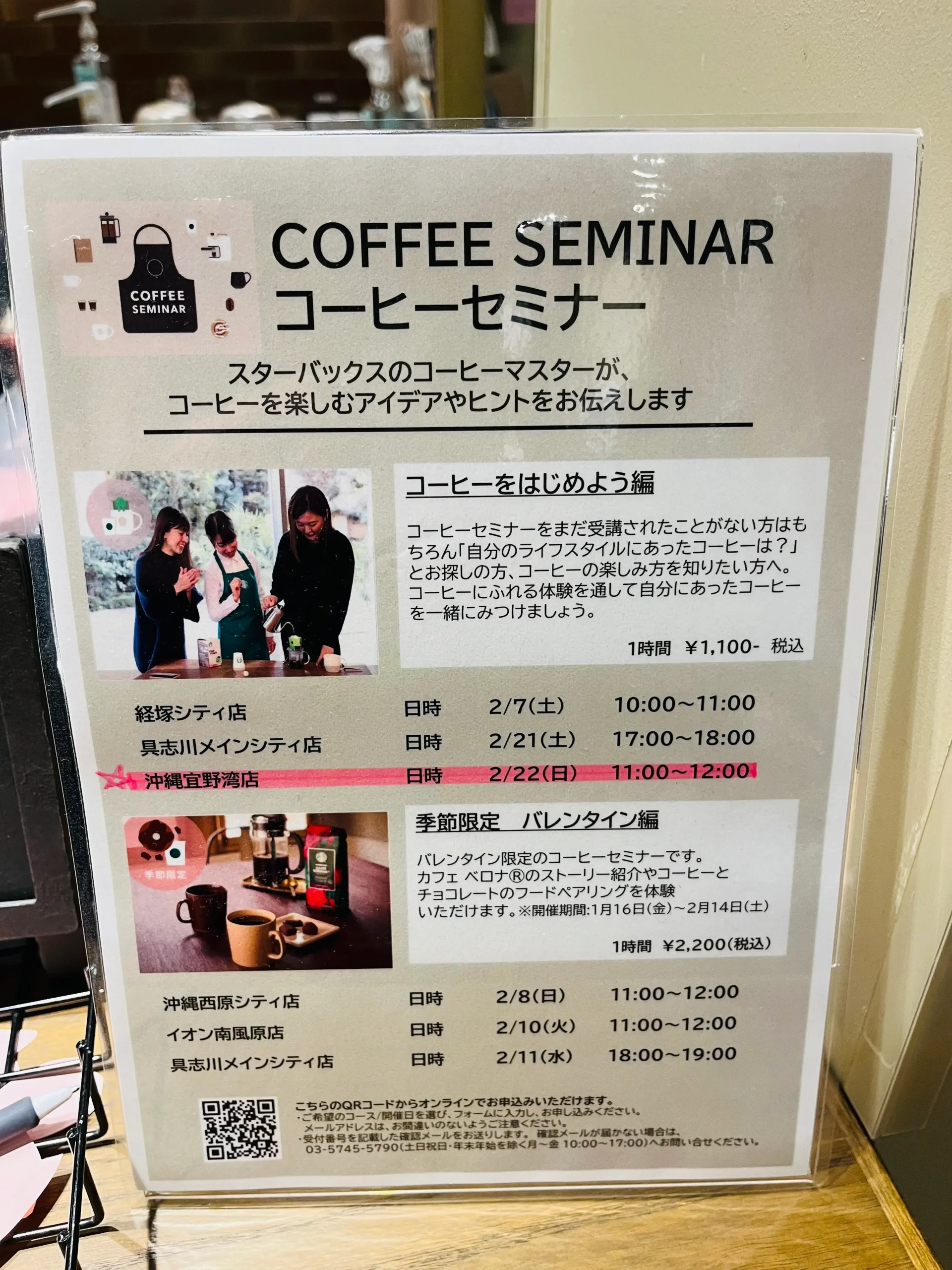 こちらの店舗では、あさって22日、11時からコーヒーセミナーが開催されるとのことです。他の店舗のコーヒーセミナーも告知されていて、よいですね。