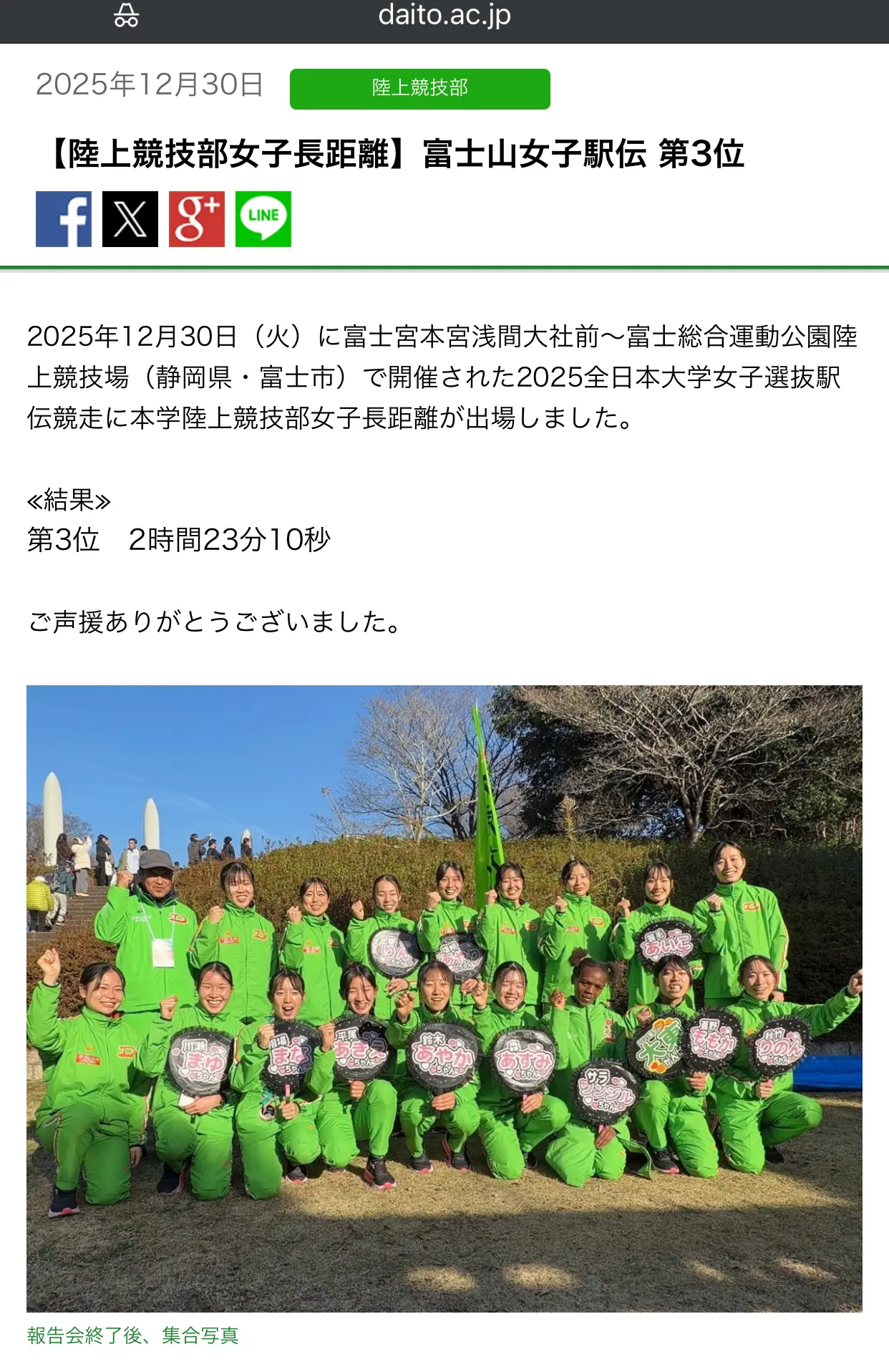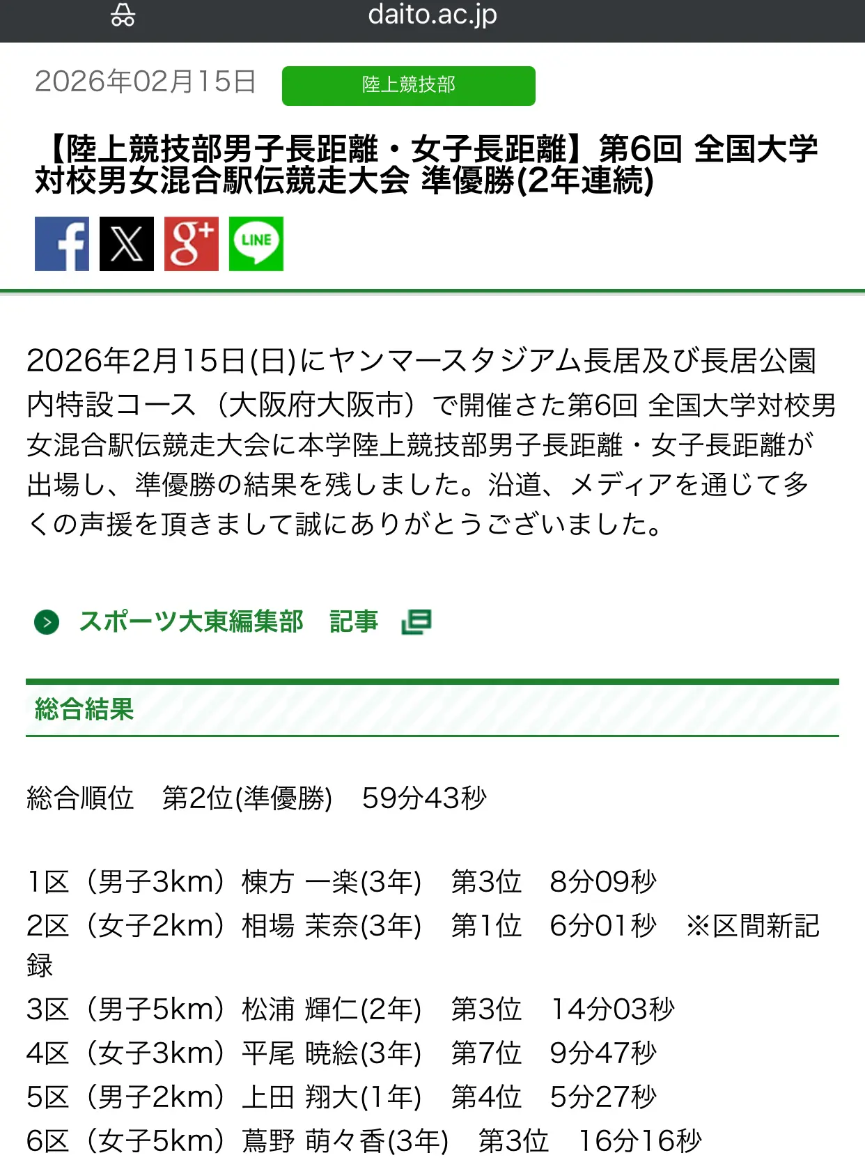 全国大学対抗男女混合駅伝が開催され、城西大学が全区間区間賞という圧倒的な力の差を見せつけ、完全制覇となりました。おめでとうございます(パチパチパチパチ)