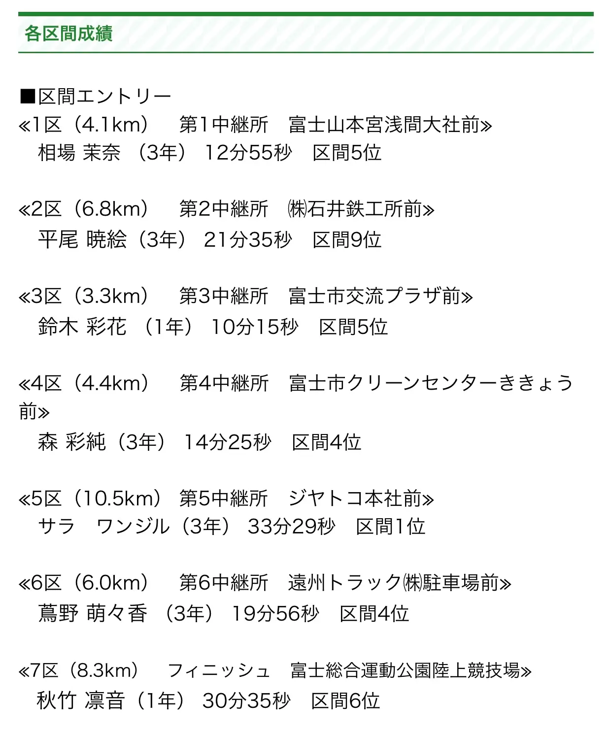 大東文化大学は、成瀬結菜選手の出走がなかったのは残念でした、、、平尾暁絵選手は駅伝で結果を残せていないので、成瀬結菜選手の出番があるかなと思っていたのですが、、、(平尾暁絵選手、富士山女子駅伝も今回の全国大学対抗男女混合駅伝も、両方とも区間順位でチーム最下位ですよね)