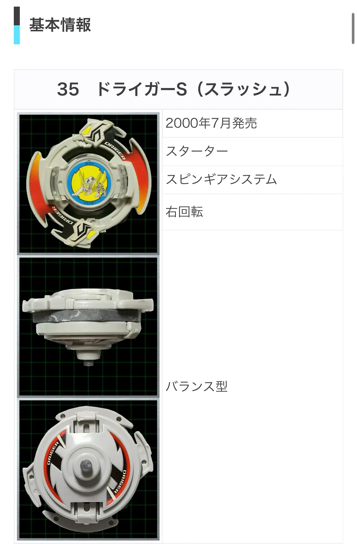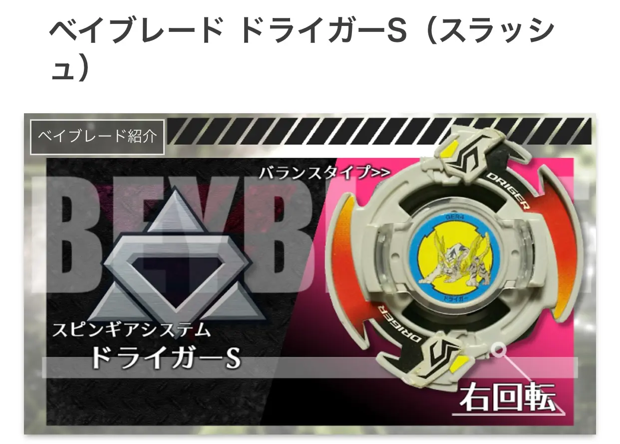 Q「子どものころにハマった遊びは?」A「ベイブレードです。当時私は、ドライガーSの使い手でした。スピンギアシステムの世代です」今もこの画像をみると、なつかしさがこみ上げてきます。