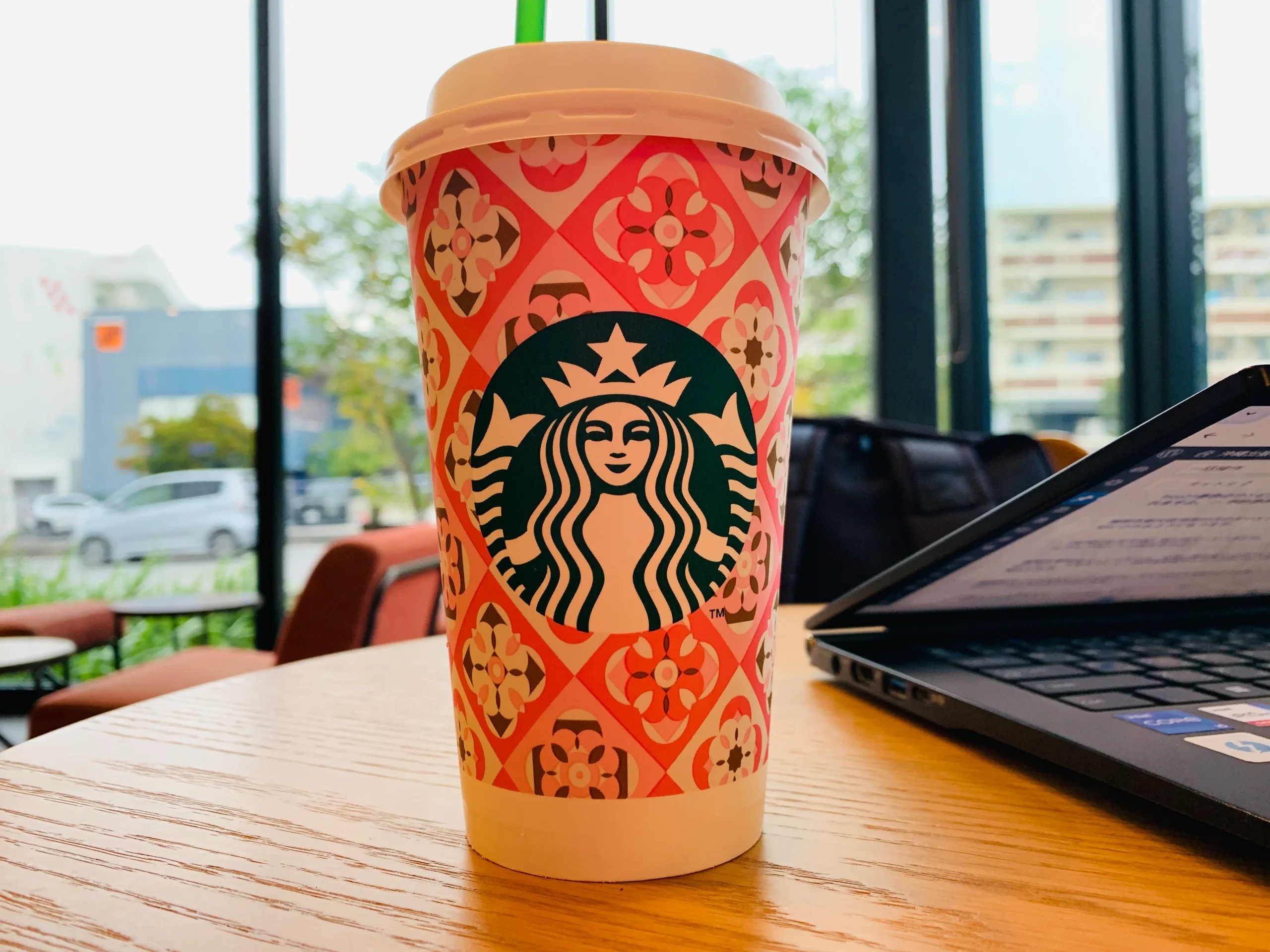 辛さを緩和しようと、そのあと、スターバックスにもよりました。ピンクカラーで、春を感じれてよいですね。