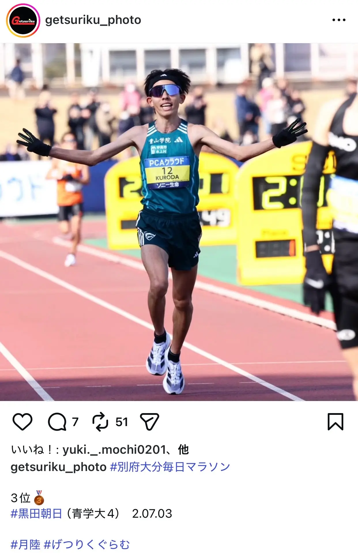 大注目の黒田朝日選手(青山学院大学)は全体3位と健闘しました。