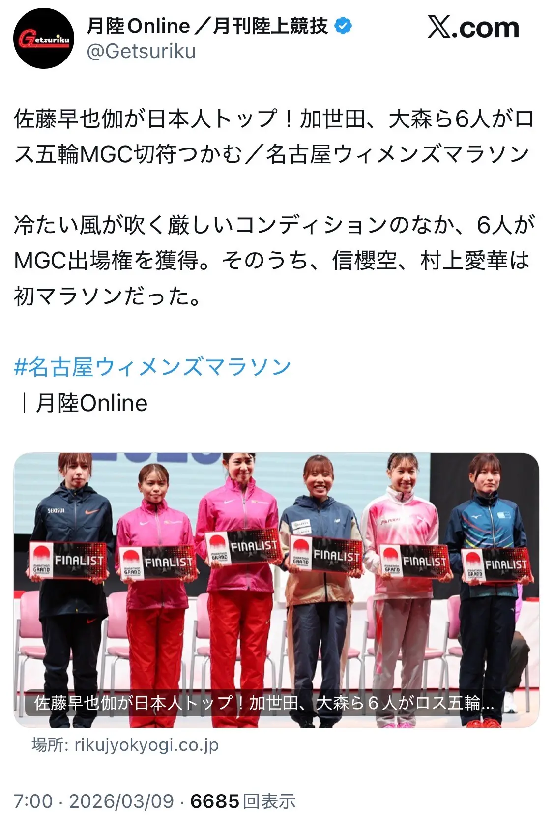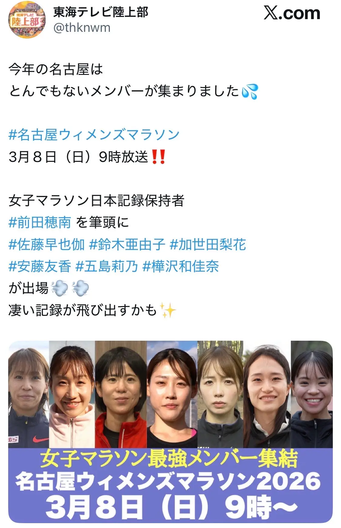 名古屋ウィメンズマラソンが先日開催され、マラソン日本記録保持者の前田穂南選手(天満屋)をはじめ、過去一といってもいいくらい、豪華なメンバーが集結しました。