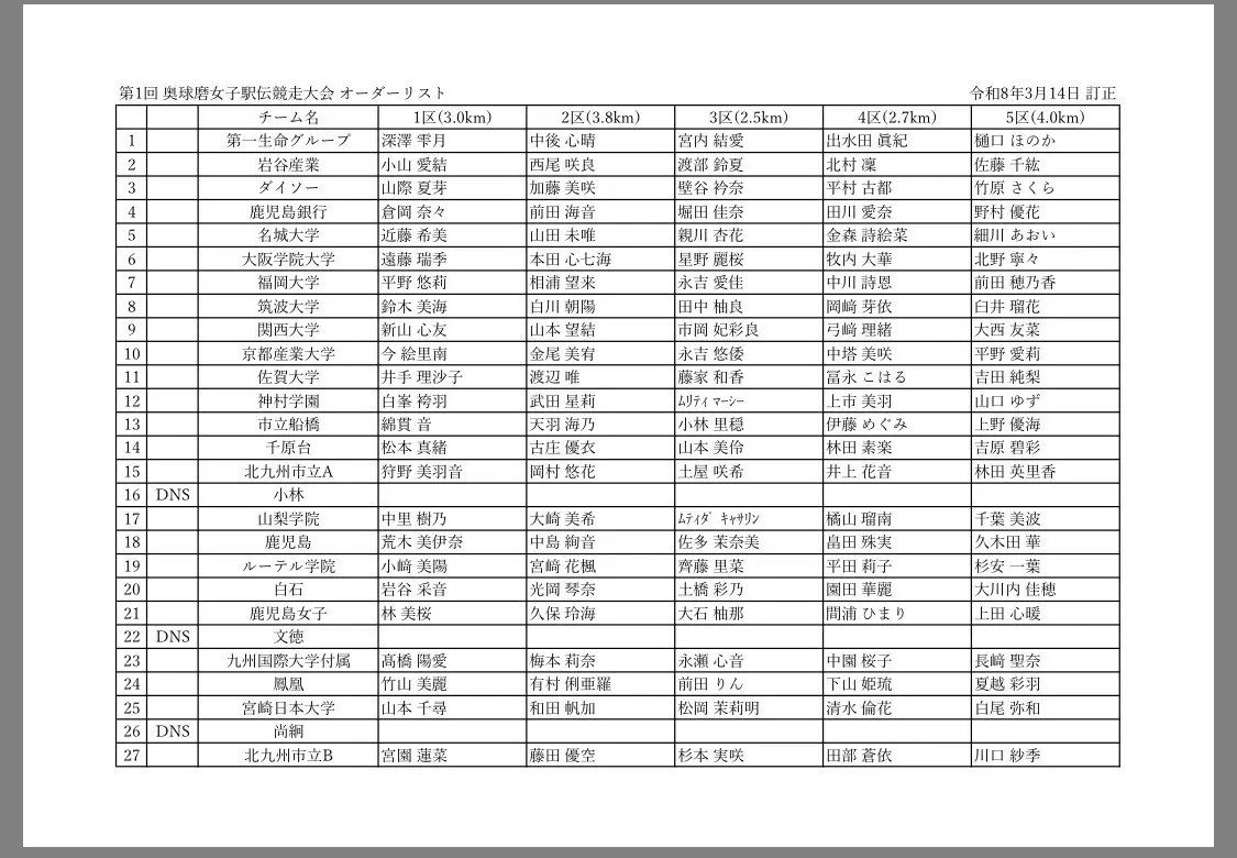 岩谷産業、第一生命グループ、ダイソー、名城大学、神村学園高等部など、強豪チームが多数出場した第1回奥球磨女子駅伝競走大会が開催されました。そして、大波乱が起きたのです。5人中4人が1年生の神村学園高等部が、大学駅伝界のスター軍団、名城大学に勝利してしまったのです。しかも名城大学は、全日本大学女子駅伝や富士山女子駅伝にも出走した選手が複数人走っており、主力級のオーダーです。なのにも関わらず、高校1年生主体のチームに、敗れてしまったのです、、、