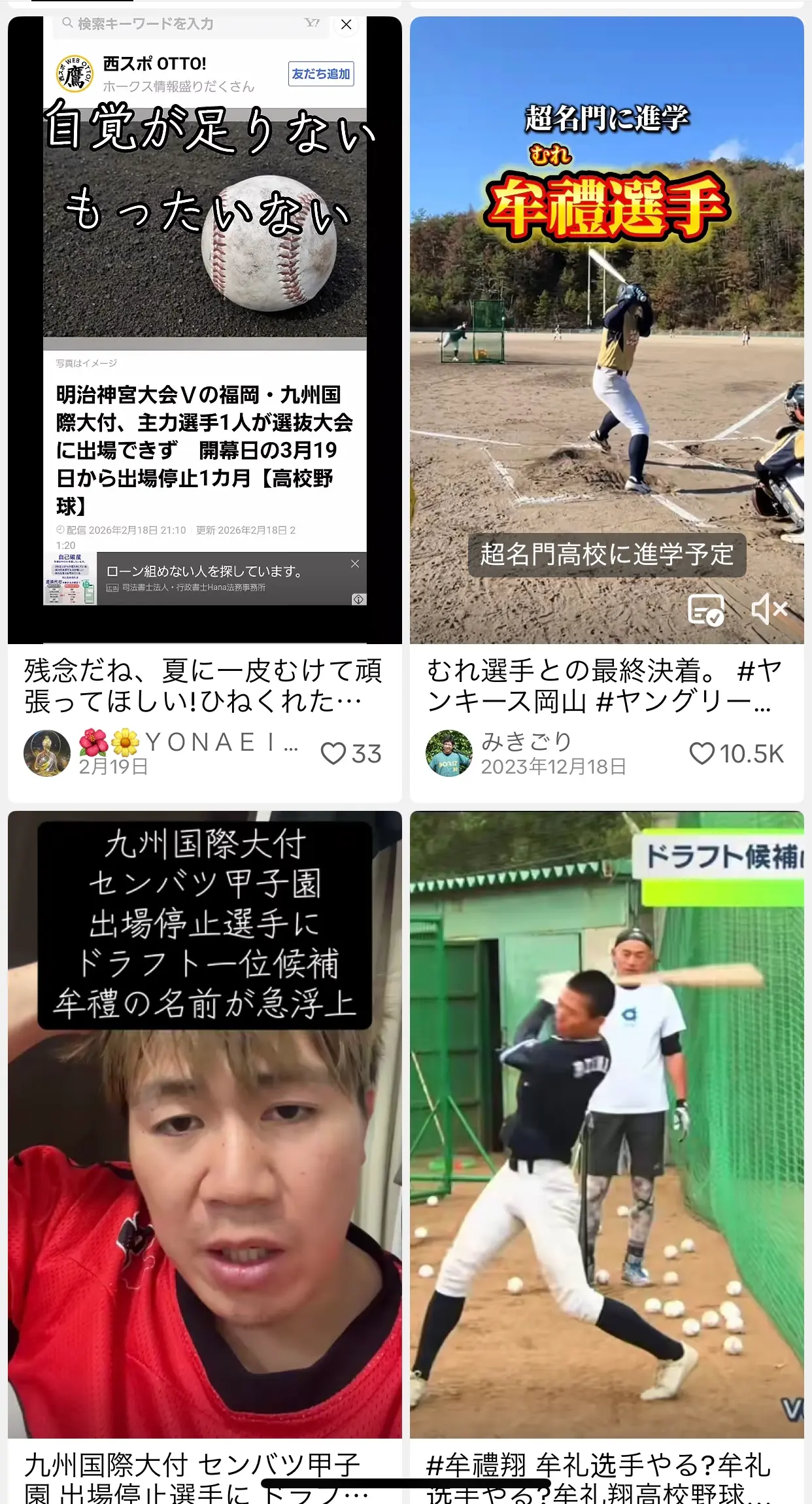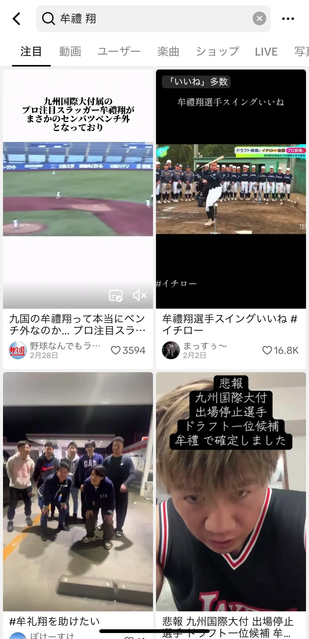 ただ、ティックトックで、「むれ翔」選手を検索すると、不祥事や謹慎という情報がたくさん出てきます、、、残念ではありますが、、、