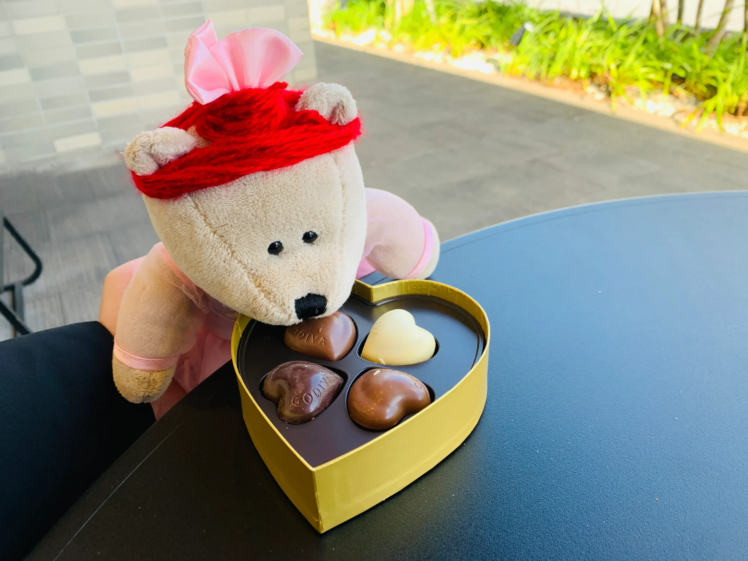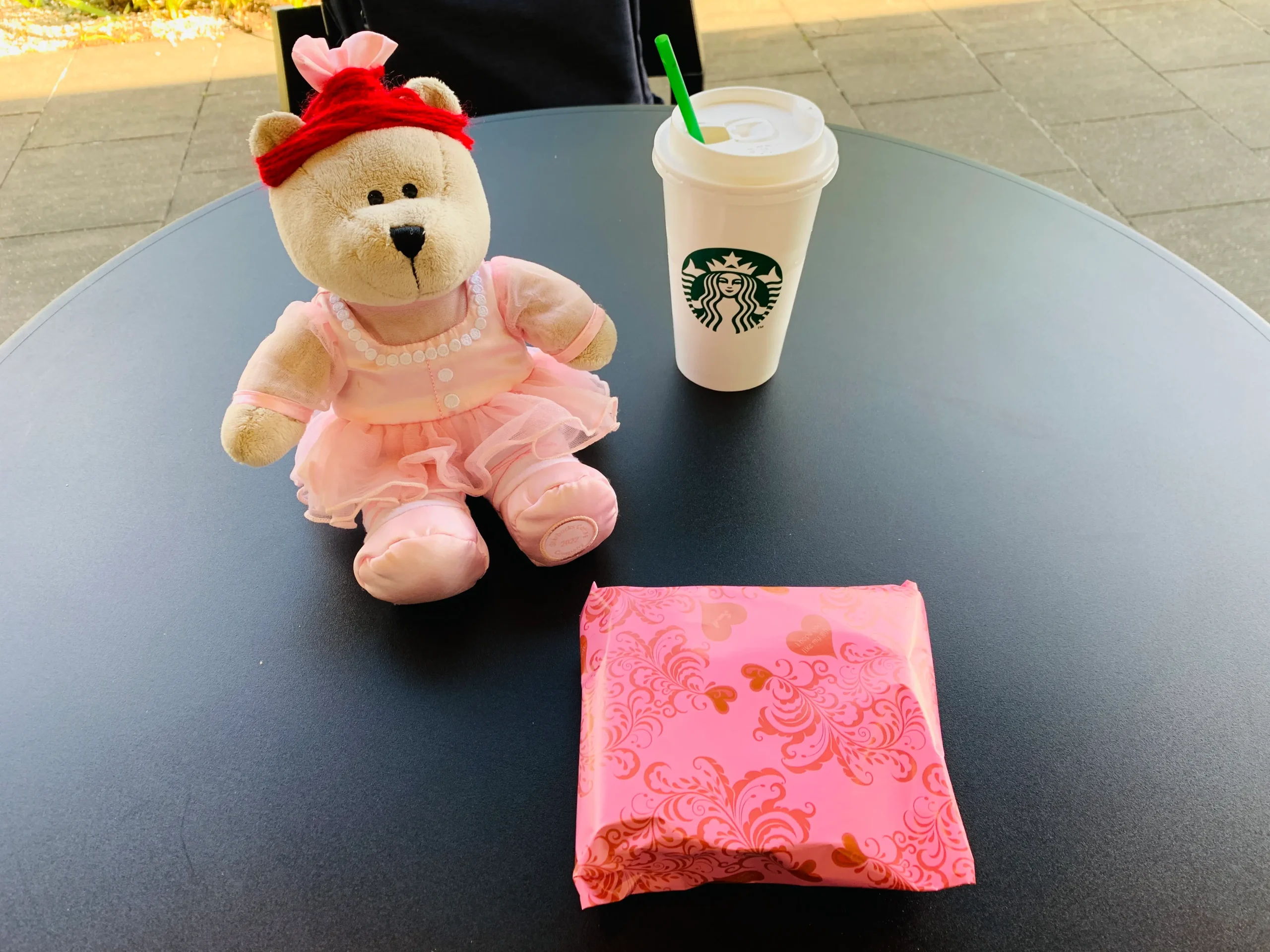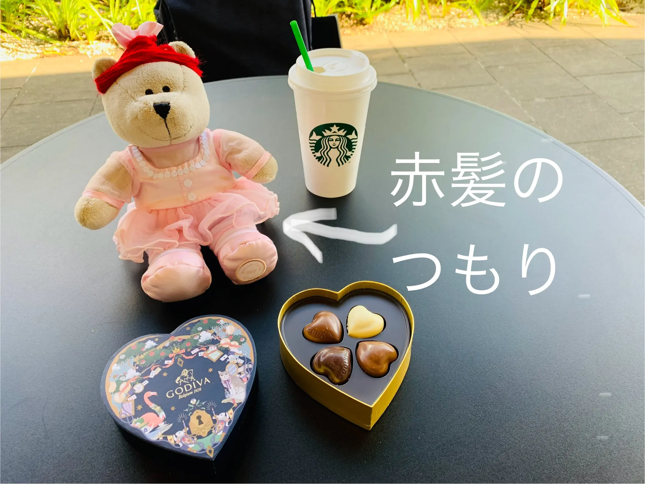 ちなみに、今日スタバに来た理由はもう一つありまして。仲良しスタッフの「赤髪」に、ホワイトデーのチョコを渡すためです。でも、今日も、「赤髪」の姿が見えない・・・スターバックスを辞めてしまったのかな・・・仕方なく、ぬいぐるみに「赤髪」になってもらいました。