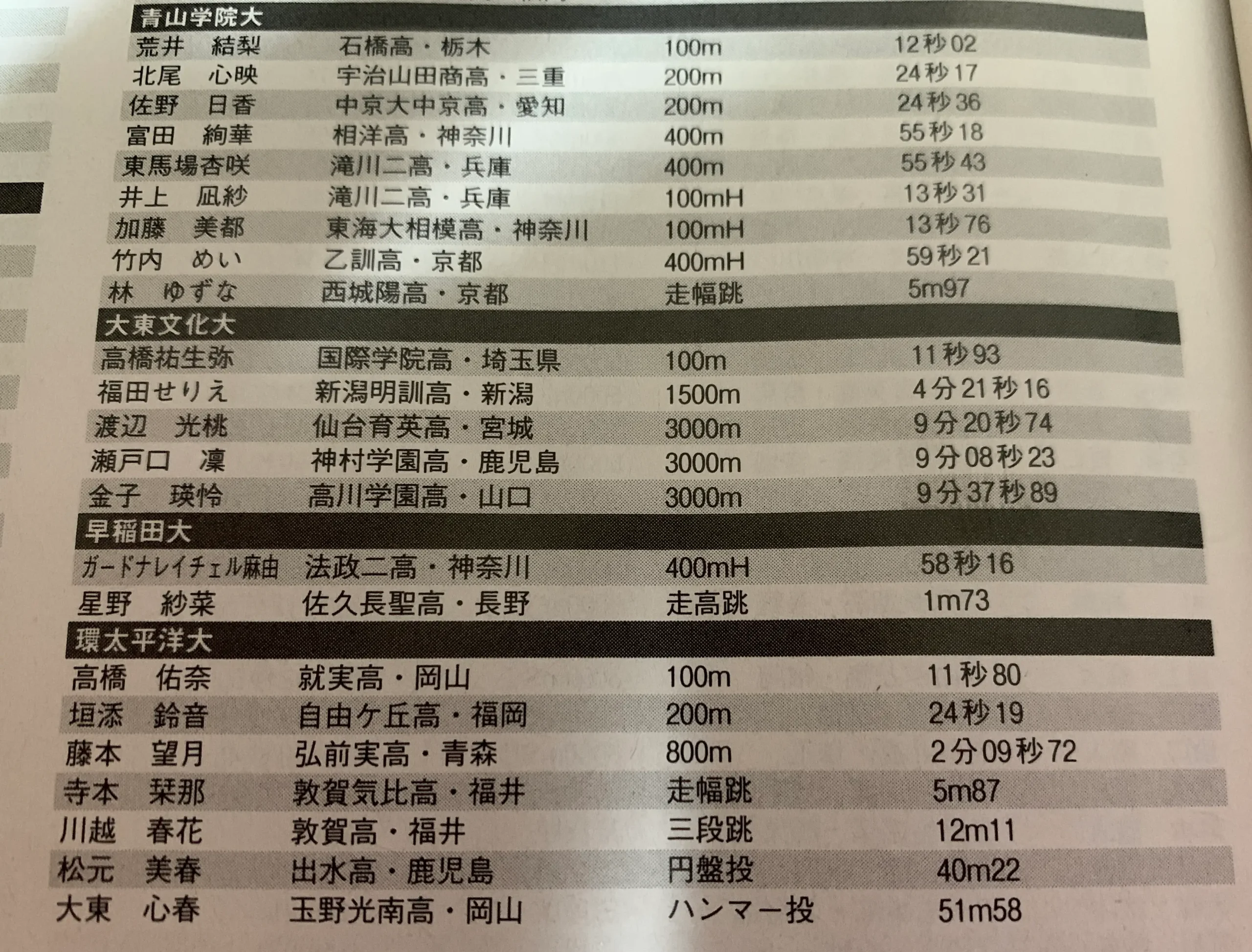 卒業シーズンということで、アスリート選手の進路に注目が集まります。高校生で日本代表になり、東京世界陸上に出場した久保凛選手(東大阪大敬愛高)は、積水化学へすすむことが発表されました。積水化学には、昨年加入した山﨑りさ選手(日本体育大学卒)、山本ゆま選手(名城大学卒)など、すばらしい先輩がたくさんおり、良い環境を選んだのではないかと思います。