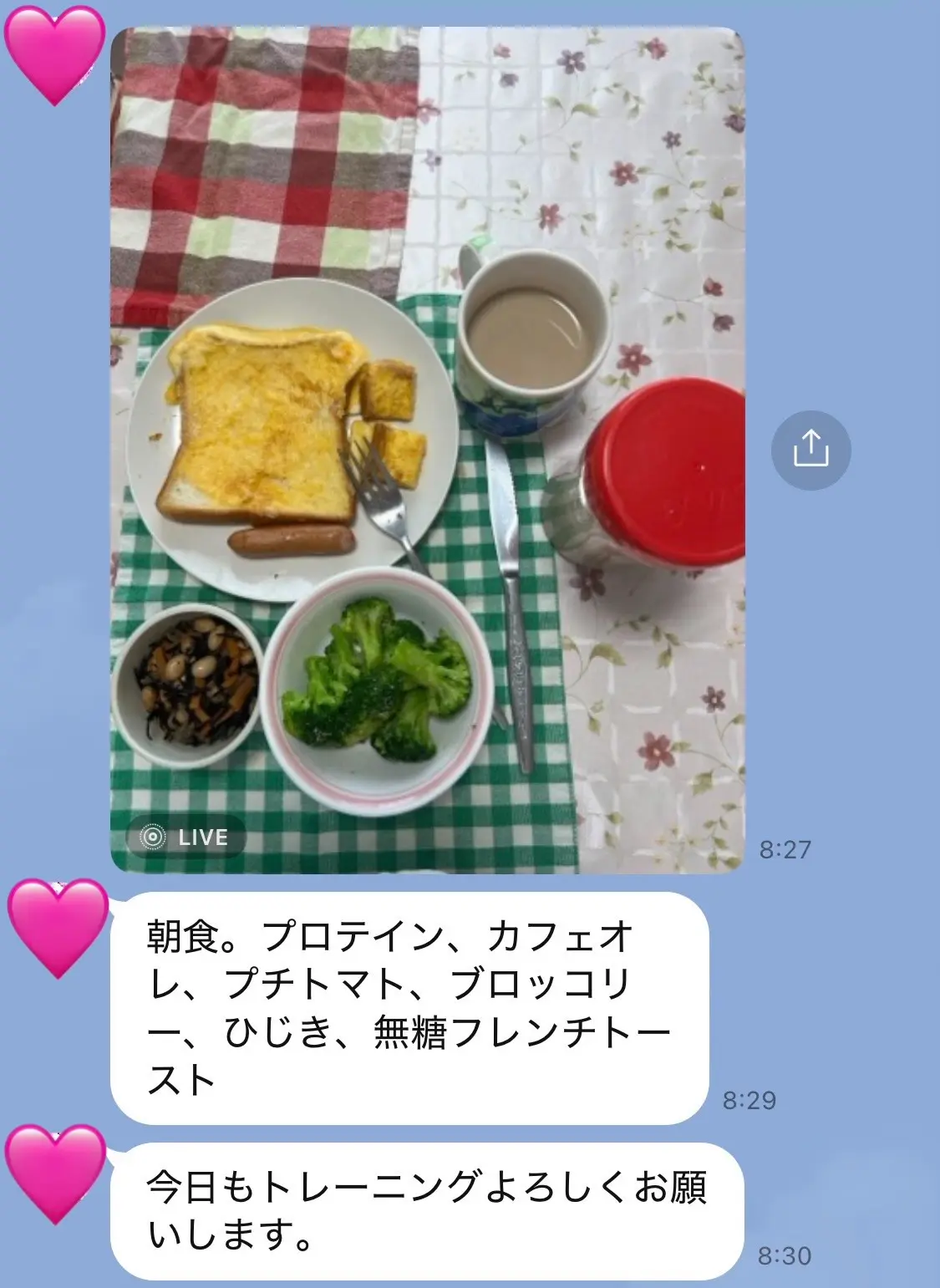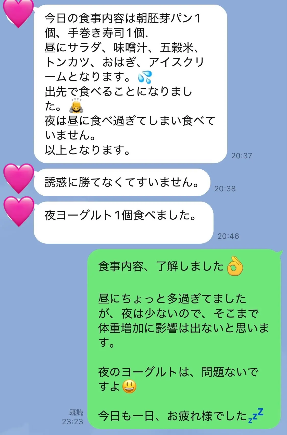 ※LINEでの食事報告を選択された場合、2日間続けて食事の報告がなかった時には、私から「何してるの?やる気あるの?(プンプン)」と電話が入ります。